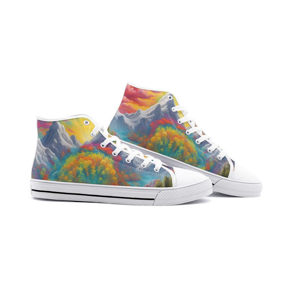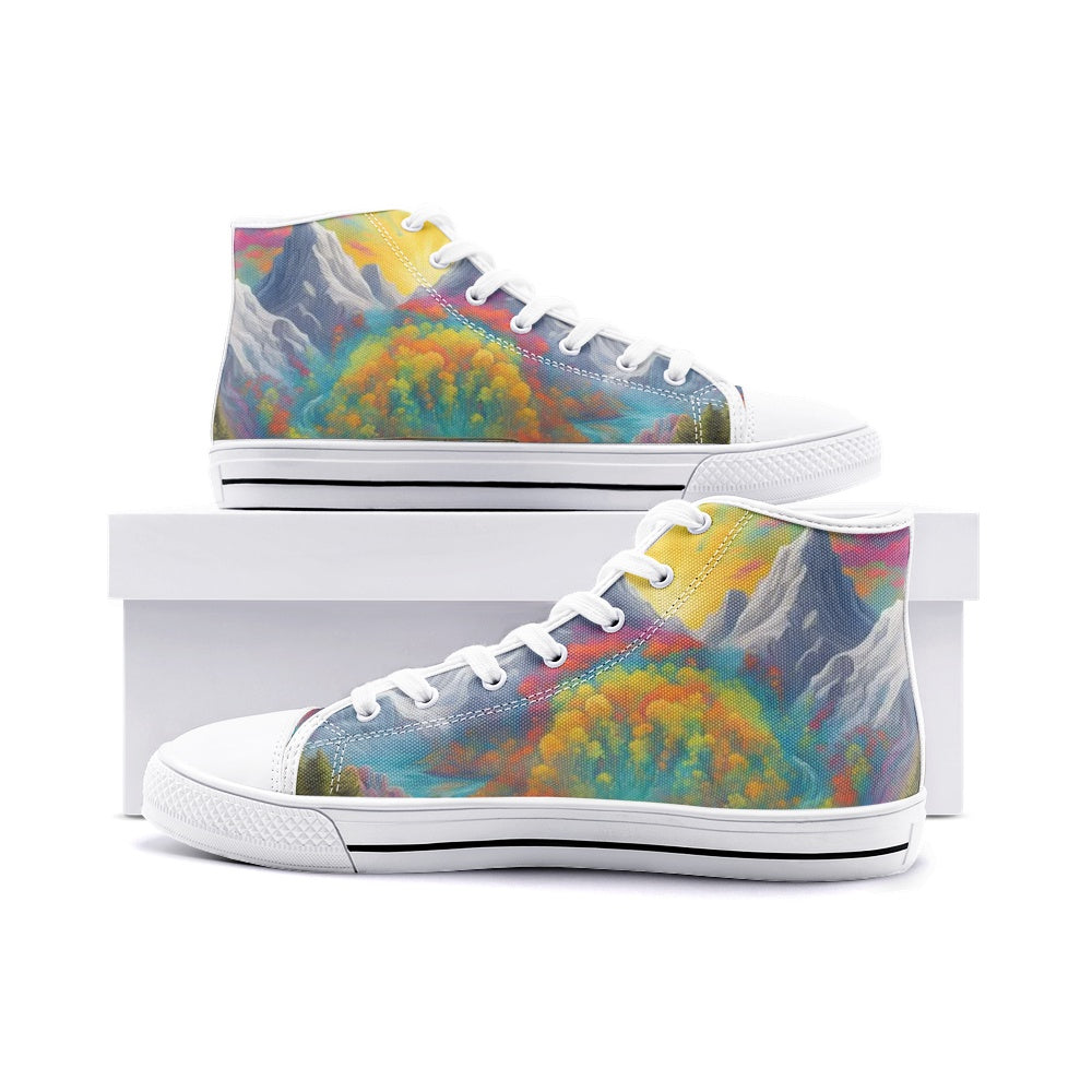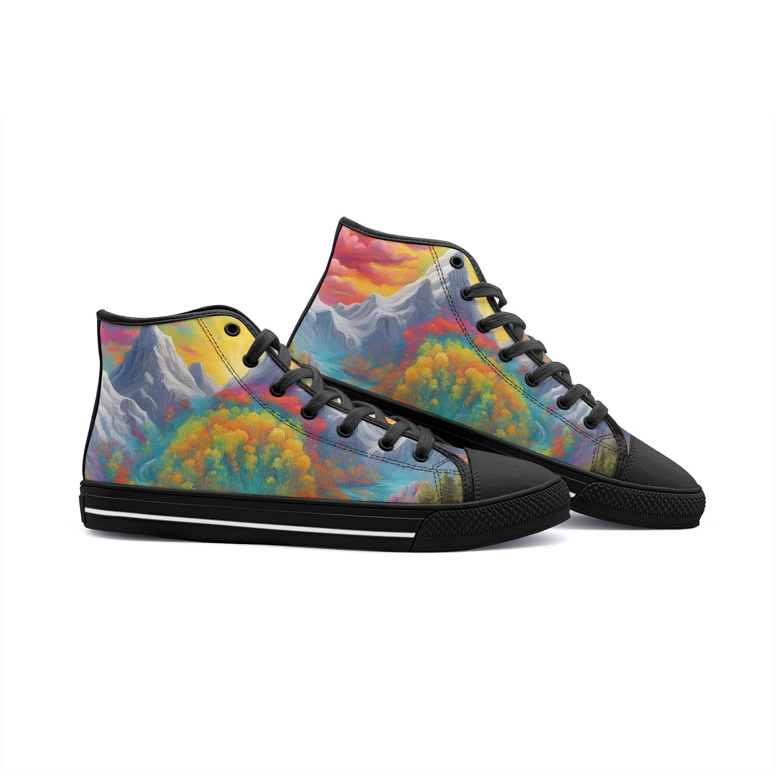 Emerald Blossoms - Gorgeous Mountain View, Hippie Destinations Unisex High Top Canvas Shoes For Hippies