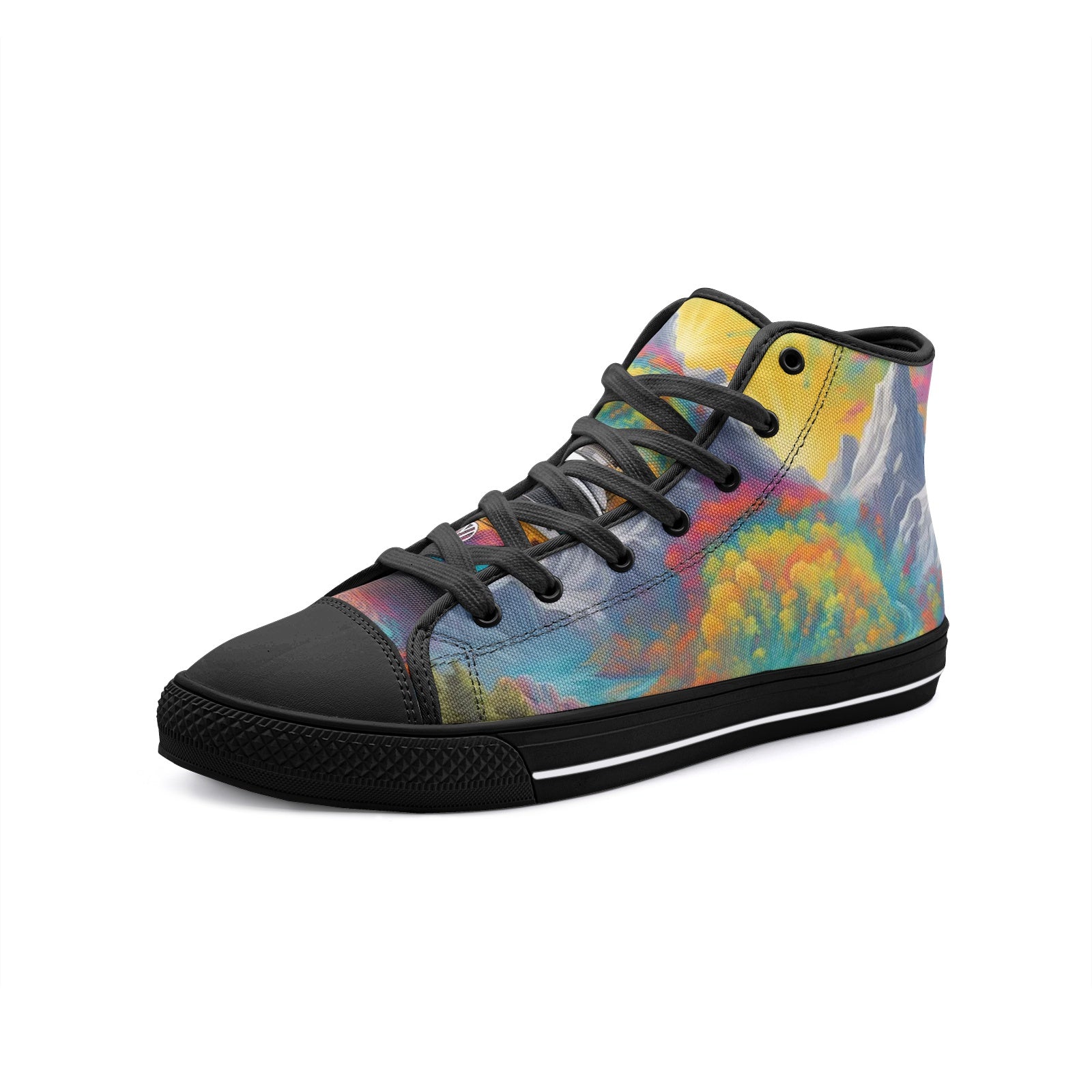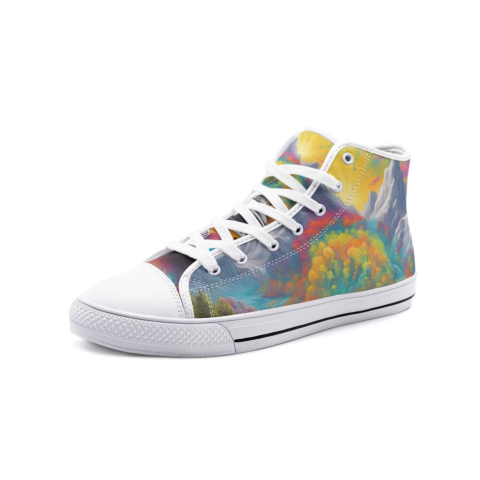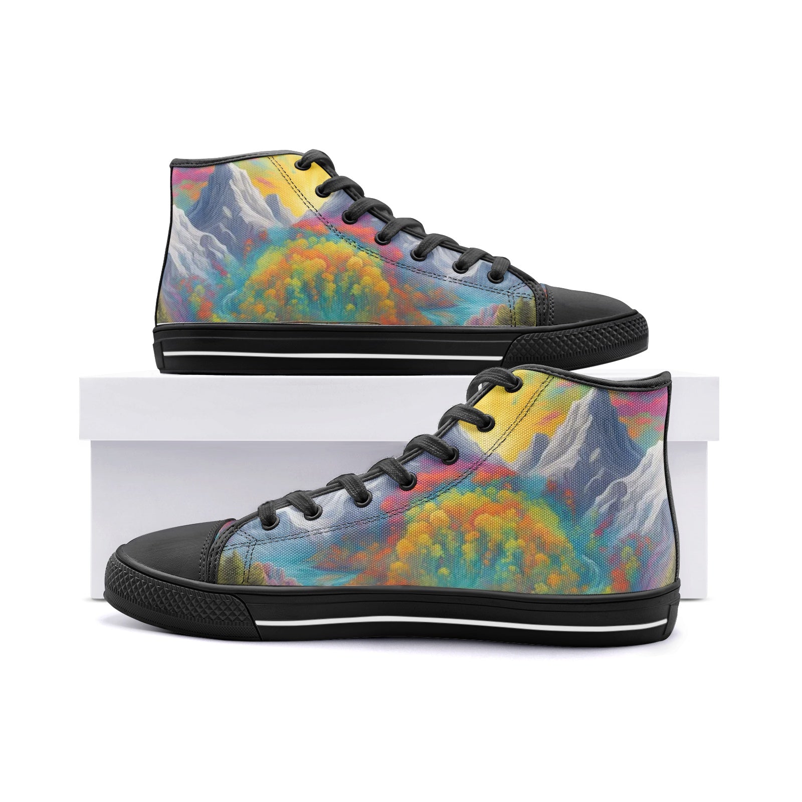 Emerald Blossoms - Gorgeous Mountain View, Hippie Destinations Unisex High Top Canvas Shoes For Hippies