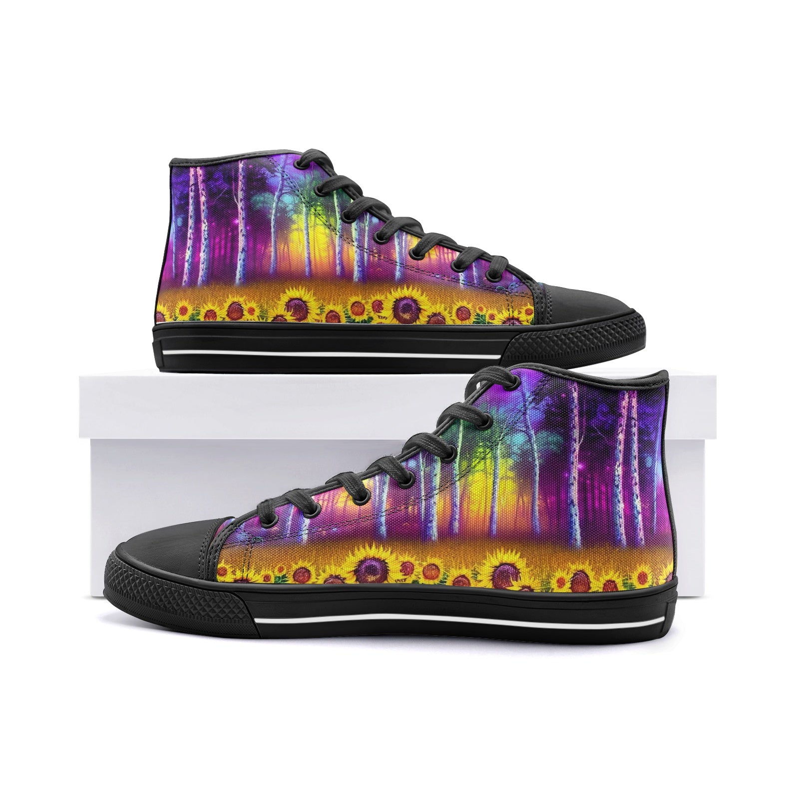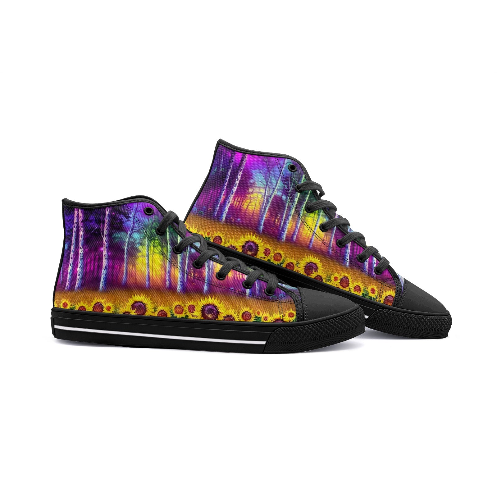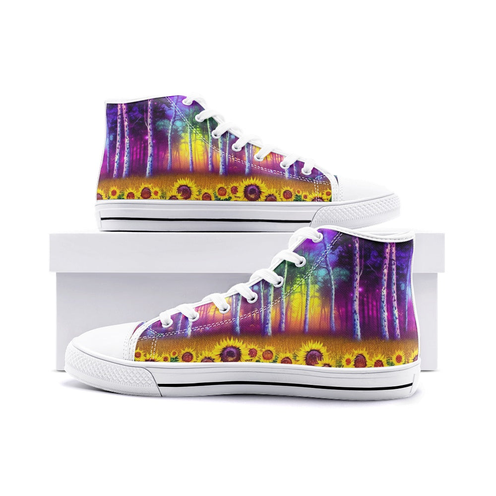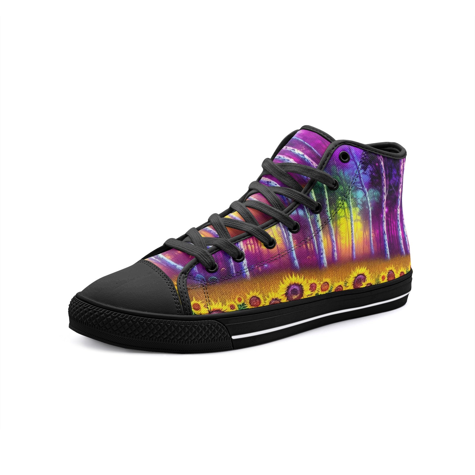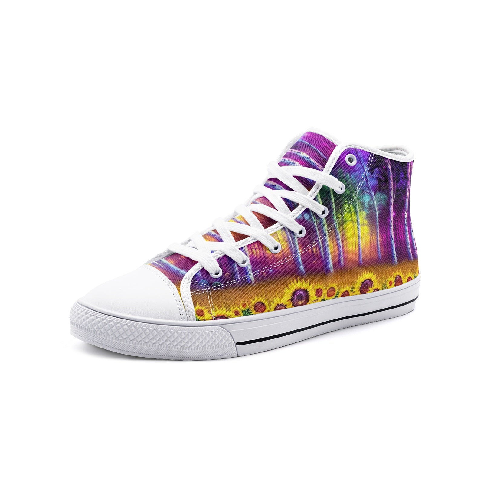 Emerald Blossoms - Magical Sunflower Field Unisex High Top Canvas Shoes For Hippies