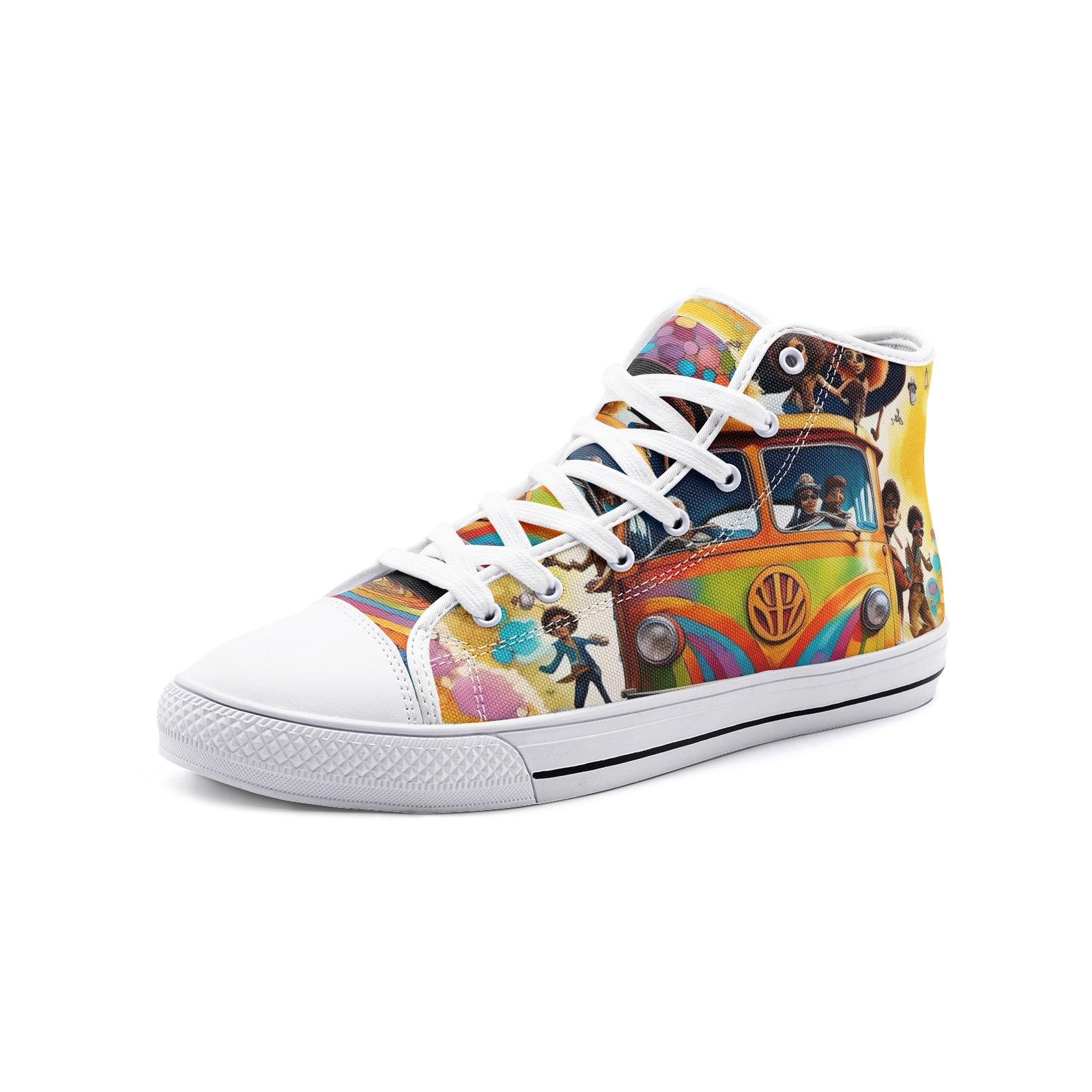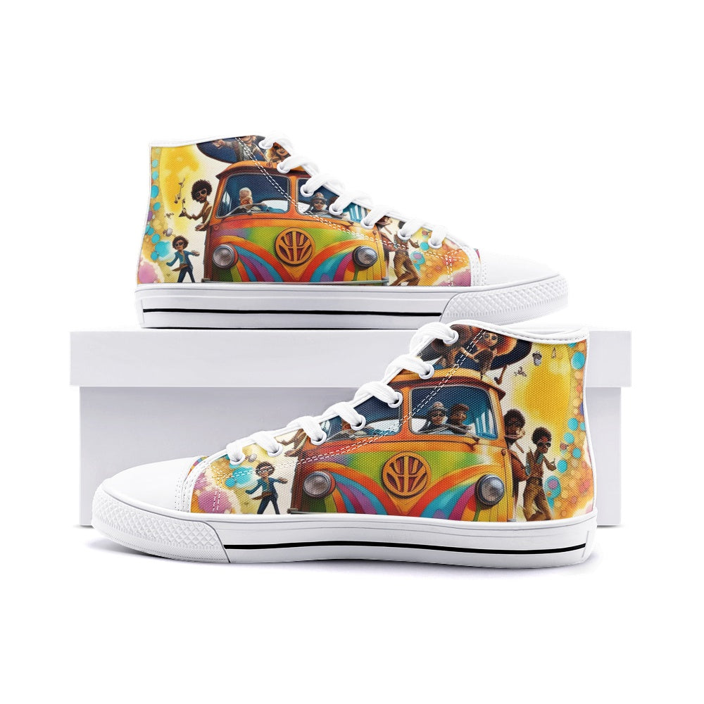 Embark on a classic road trip adventure with the Road Trips On Kombi Van Unisex High Top Canvas. Inspired by the iconic Volkswagen Kombi truck, these shoes embody the spirit of freedom and exploration. With a vibrant design that celebrates the open road and scenic routes, each shoe is a tribute to the passion for travel and nostalgia