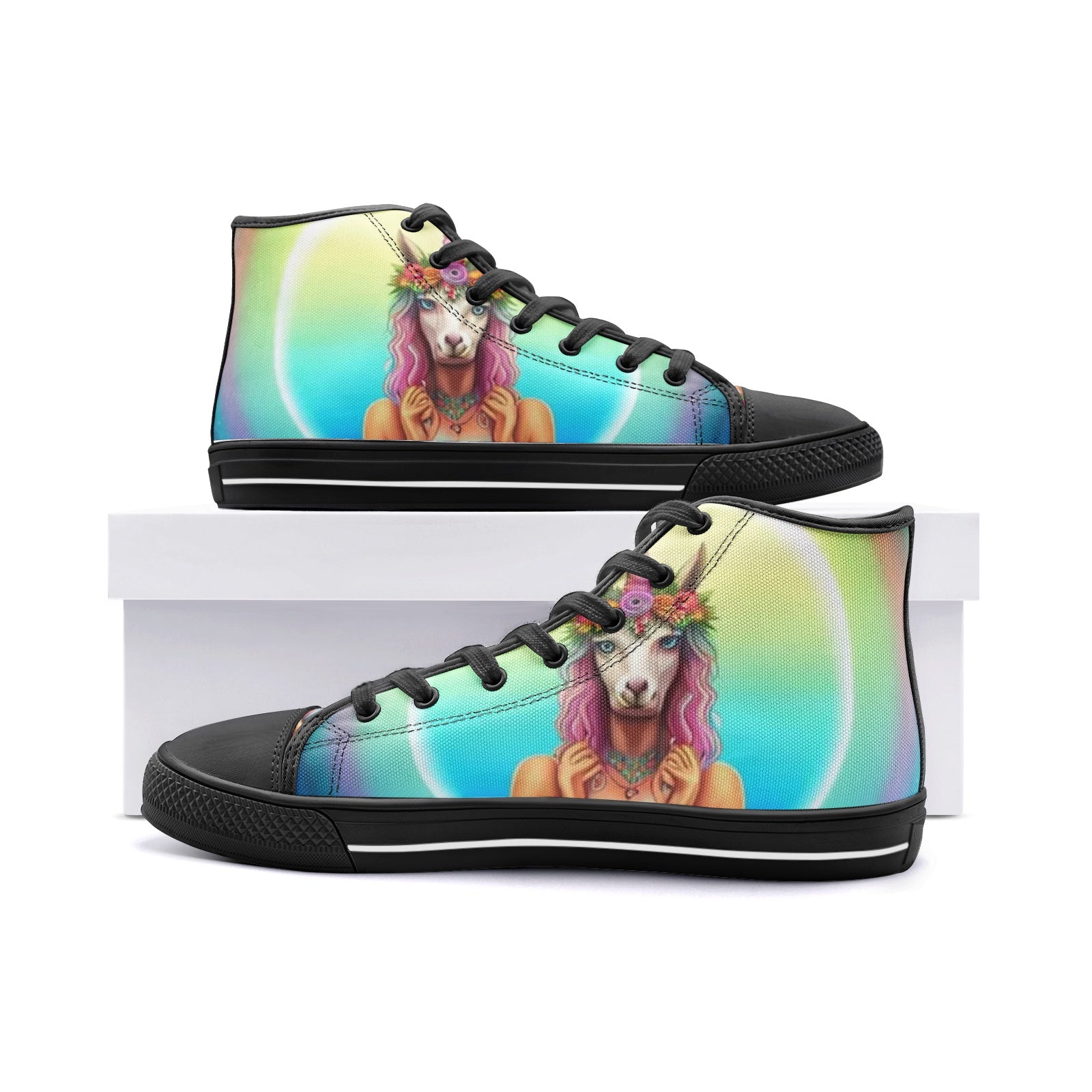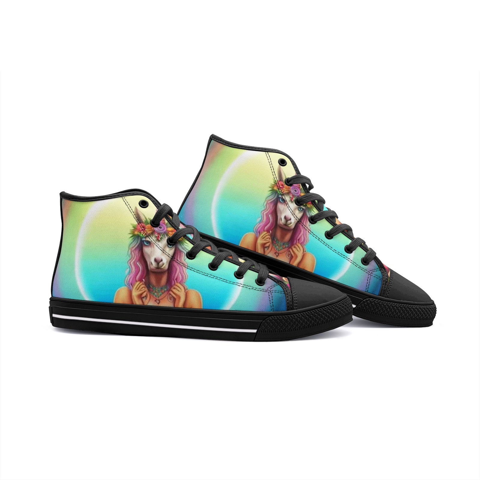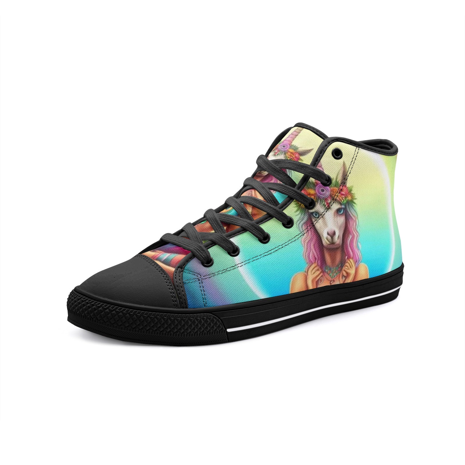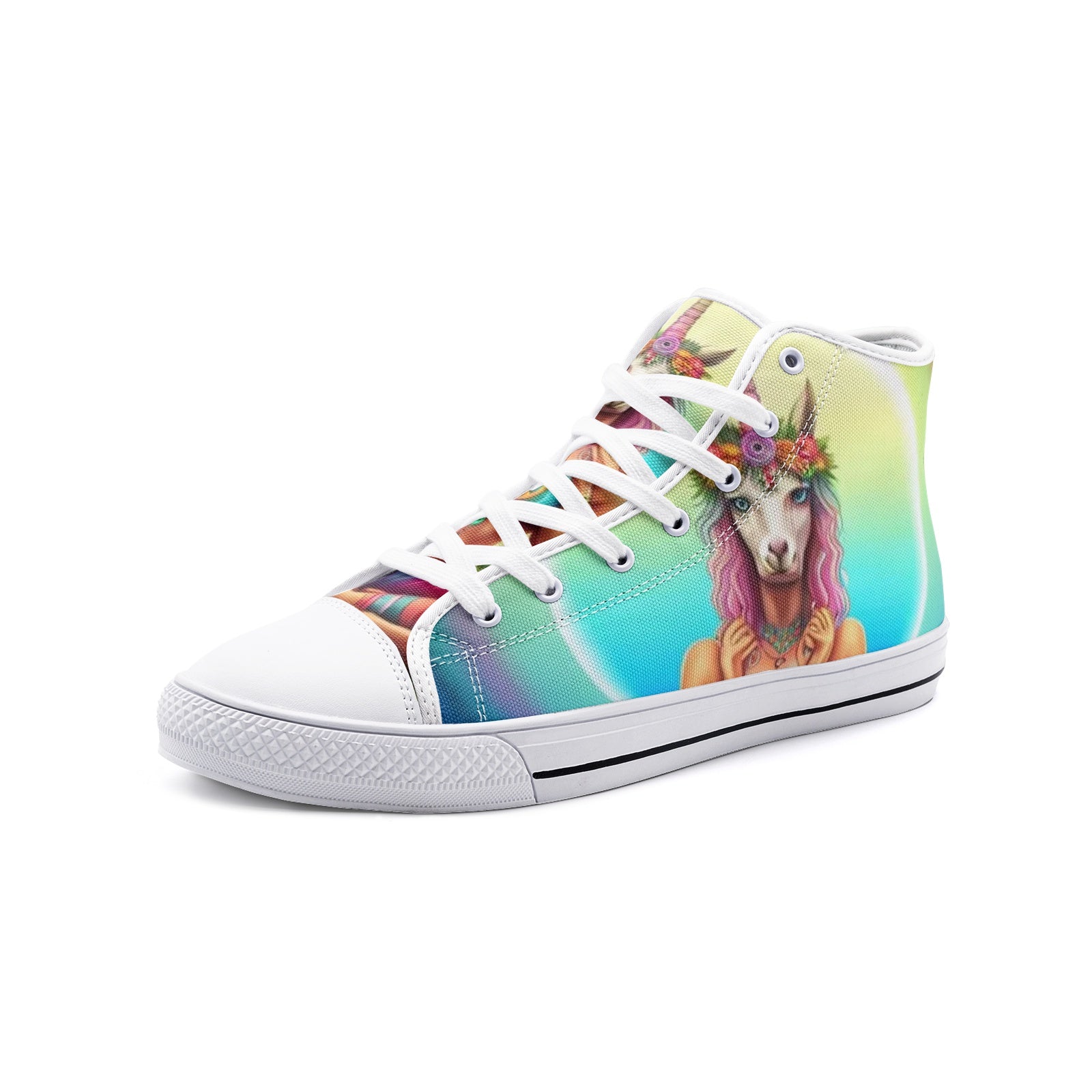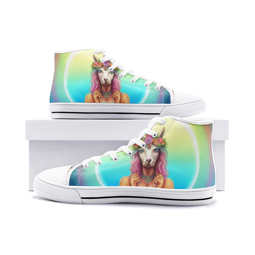 Emerald Blossoms - Unicorn Girl Unisex High Top Canvas Shoes For Hippies
