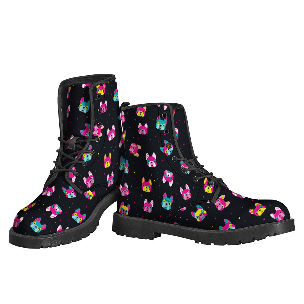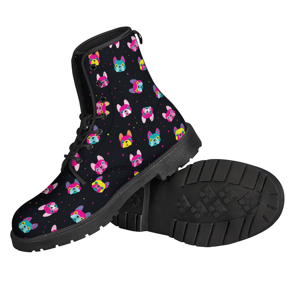 Step out in style with these Colorful French Bulldog Print Leather Boots from Gear Frost. These lightweight boots are perfect for the free-spirited hippie in you. The vibrant and unique French Bulldog print will add a fun and playful touch to any outfit. Made from high-quality leather, these boots are durable, comfortable, and will last you for years to come. Whether you're exploring the great outdoors or dancing at a music festival, these boots will keep you looking and feeling great. Make a statement with your footwear with these one-of-a-kind hippie leather boots.