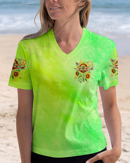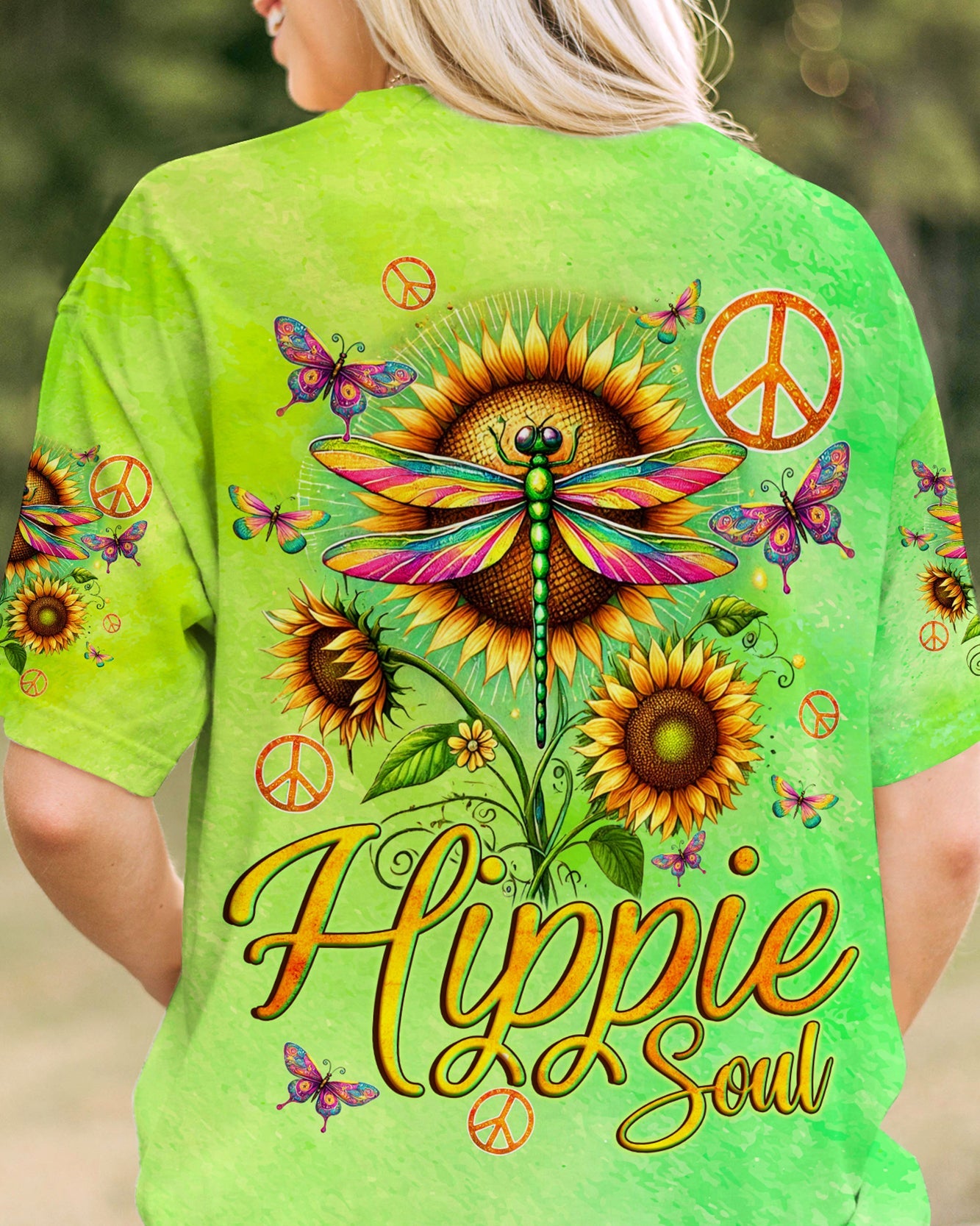 Explore the essence of freestyle with our Hippie Soul Dragonfly and Sunflower All Over Print shirts. Radiating vibrant colors and intricate designs, this shirt exudes nostalgic 1960s charm. Crafted for comfort and decorated with mesmerizing prints, it perfect for those who love individuality and positivity. Embody the carefree spirit of the hippie era with this unique and expressive piece.