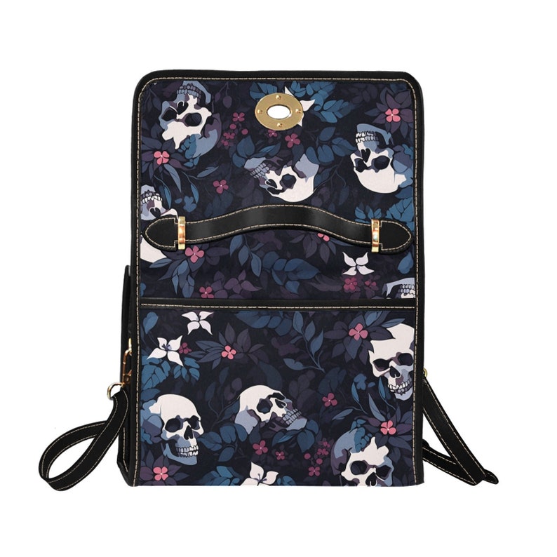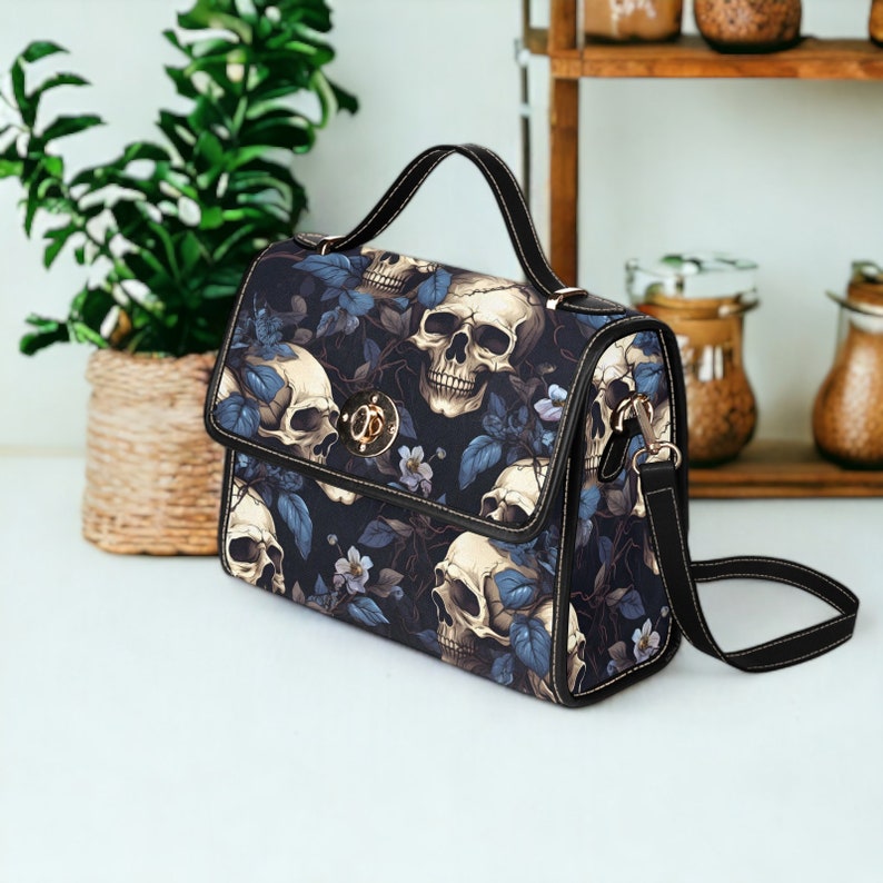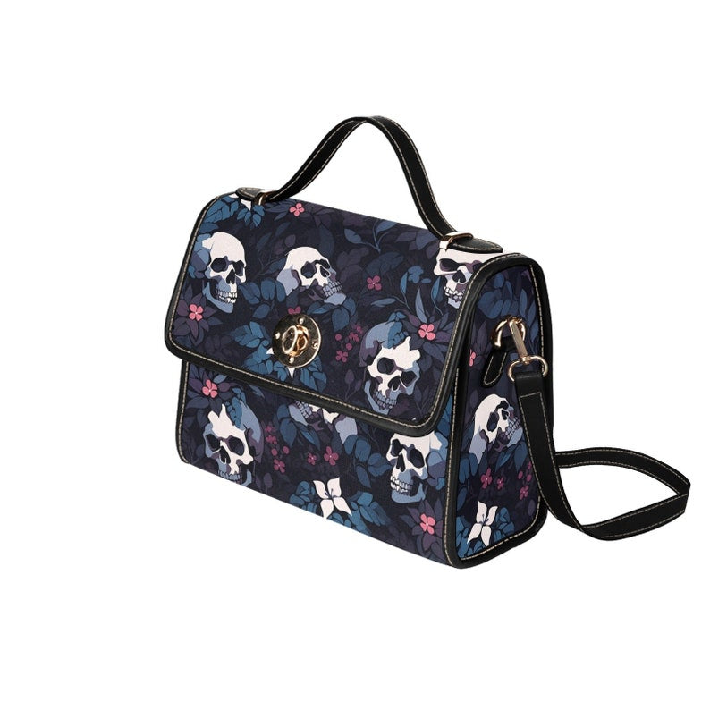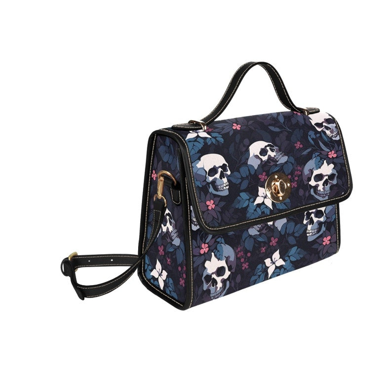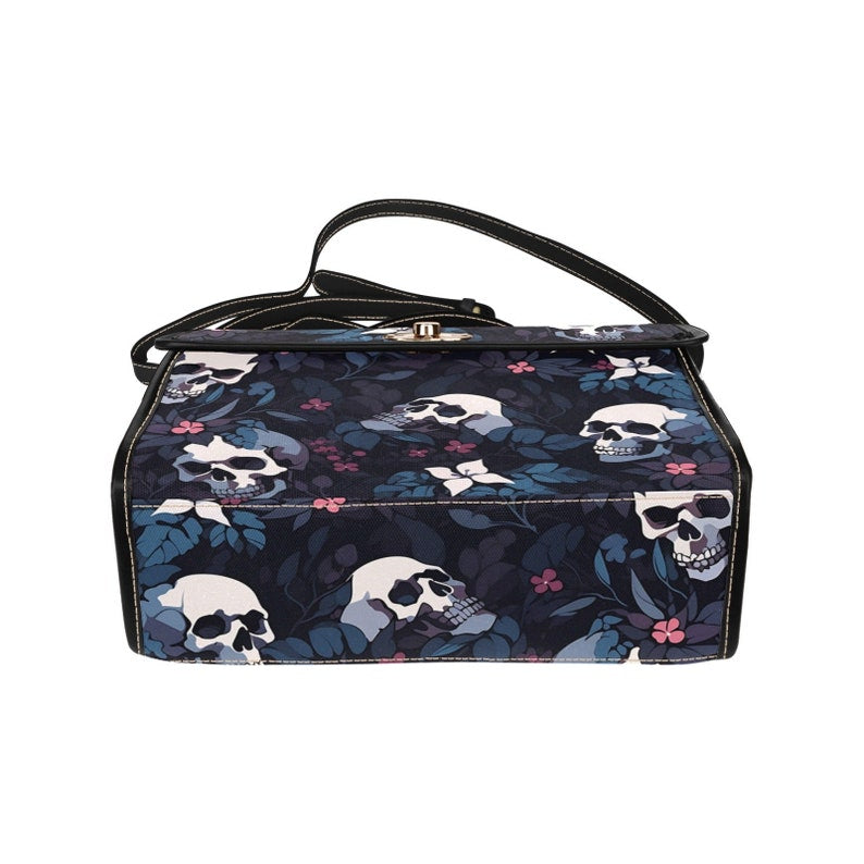 Introducing our Dark Skull Boho Halloween Satchel Bag, a bold and spooky accessory that combines bohemian style with a Halloween vibe. Adorned with intricate skull motifs on a dark fabric background, this bag captures the essence of dark aesthetic glamor with a touch of whimsy. Crafted from durable materials, it combines practicality with artistic flair, perfect for storing essentials with a unique edge. Ideal for those who love Halloween fashion and seek accessories that express their love of dark and artistic motifs.