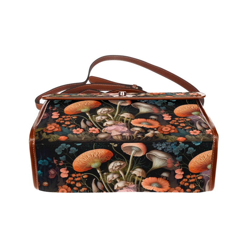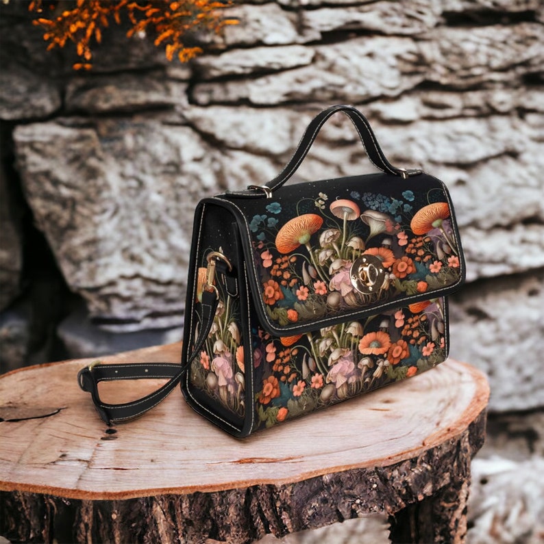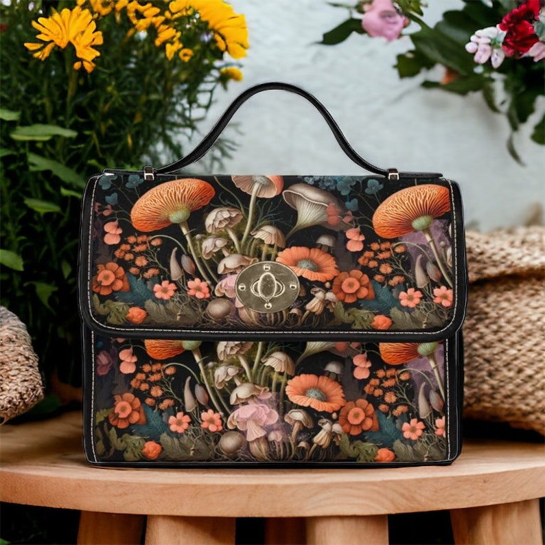 Introducing our Witch Mushroom Bag, a whimsical and captivating accessory that combines a witchy aesthetic with the natural beauty of mushrooms. Adorned with a cute mushroom floral pattern on a dark background, this bag captures the essence of mystical charm and woodland whimsy. Crafted from durable materials, it combines practicality with artistic flair, perfect for carrying your essentials with captivating elegance. Ideal for those who appreciate unique fashion inspired by nature and seek accessories that reflect their love of witchy motifs and whimsical style.