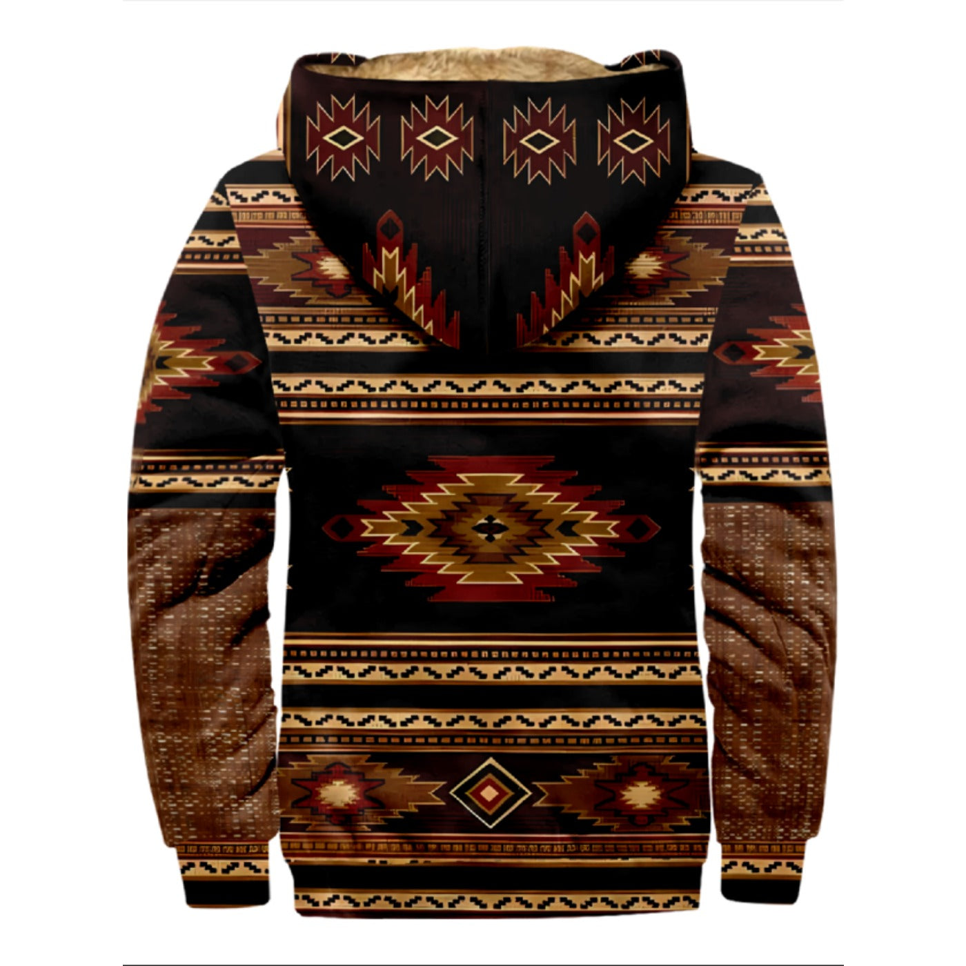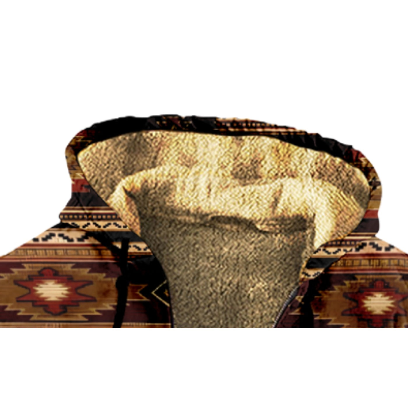 Discover a unique blend of tradition and style with our Black and Brown Native American Wool Hooded Jacket "Emerald Blossoms". With rich earth tones and intricate Native-inspired prints, this jacket celebrates cultural artistry with a modern twist. Stay warm and stylish this autumn and winter with our Men’s and Women’s Thick Wool Hooded Double-Layer Jackets. Perfect for casual outings, these jackets offer: