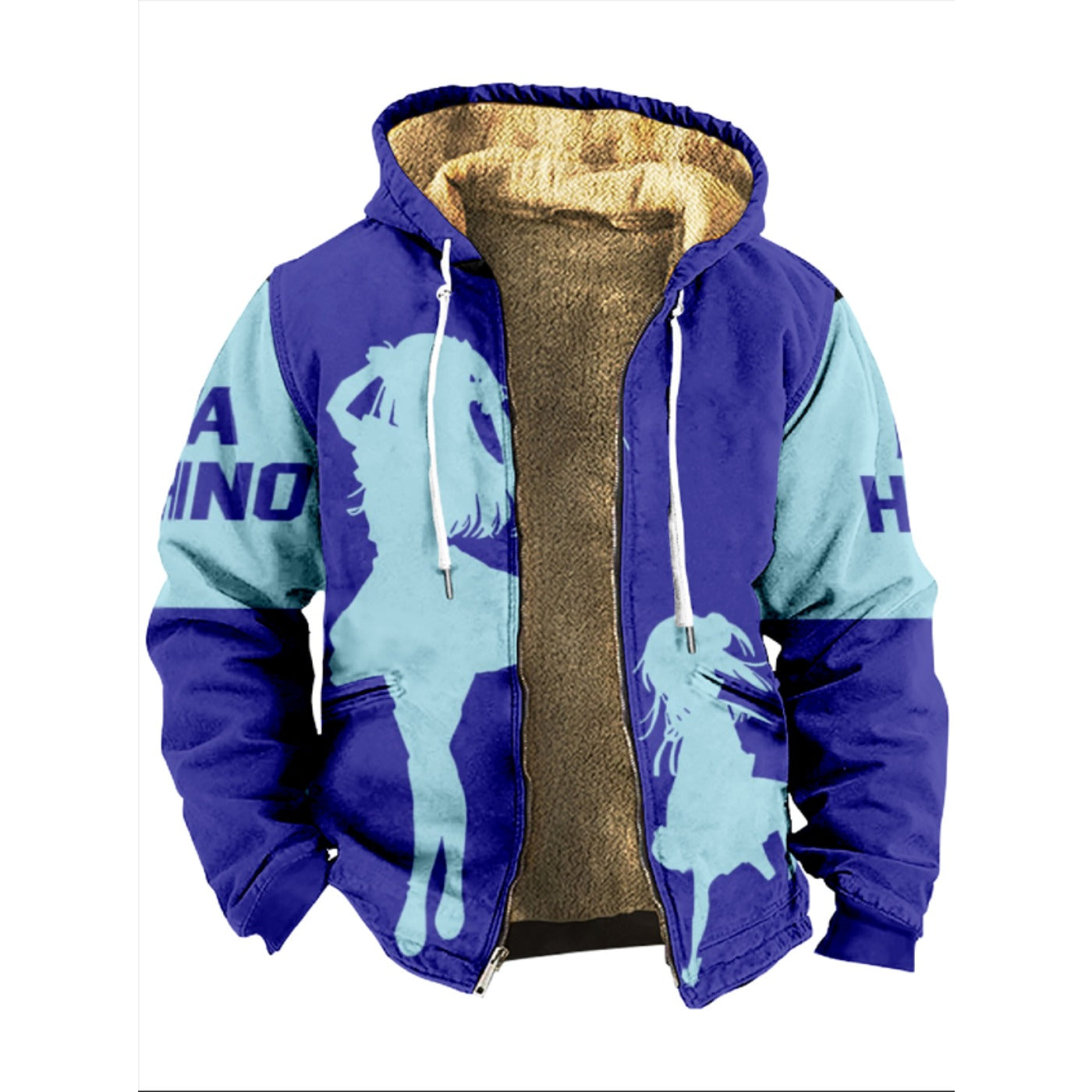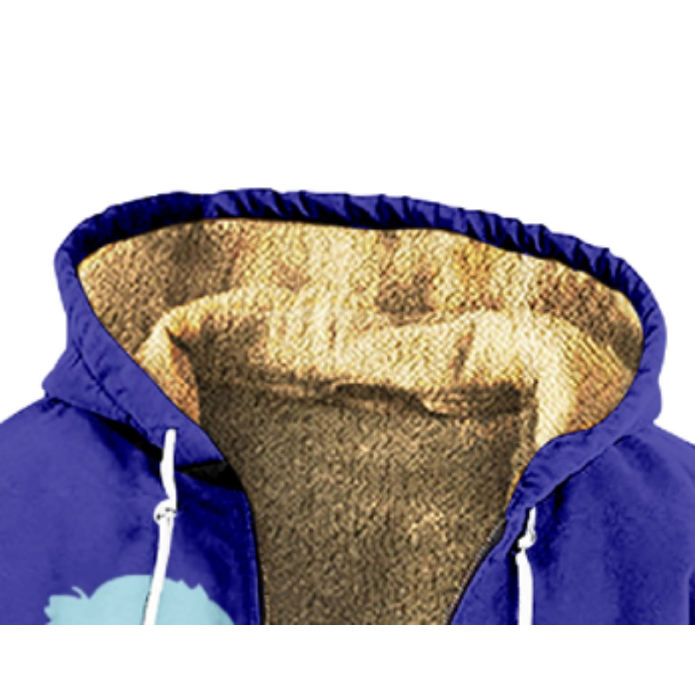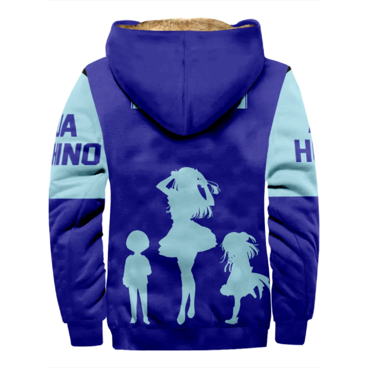Emerald Blossoms - Blue Anime Characters Pattern Print Wool Hooded Jackets For Hippie
