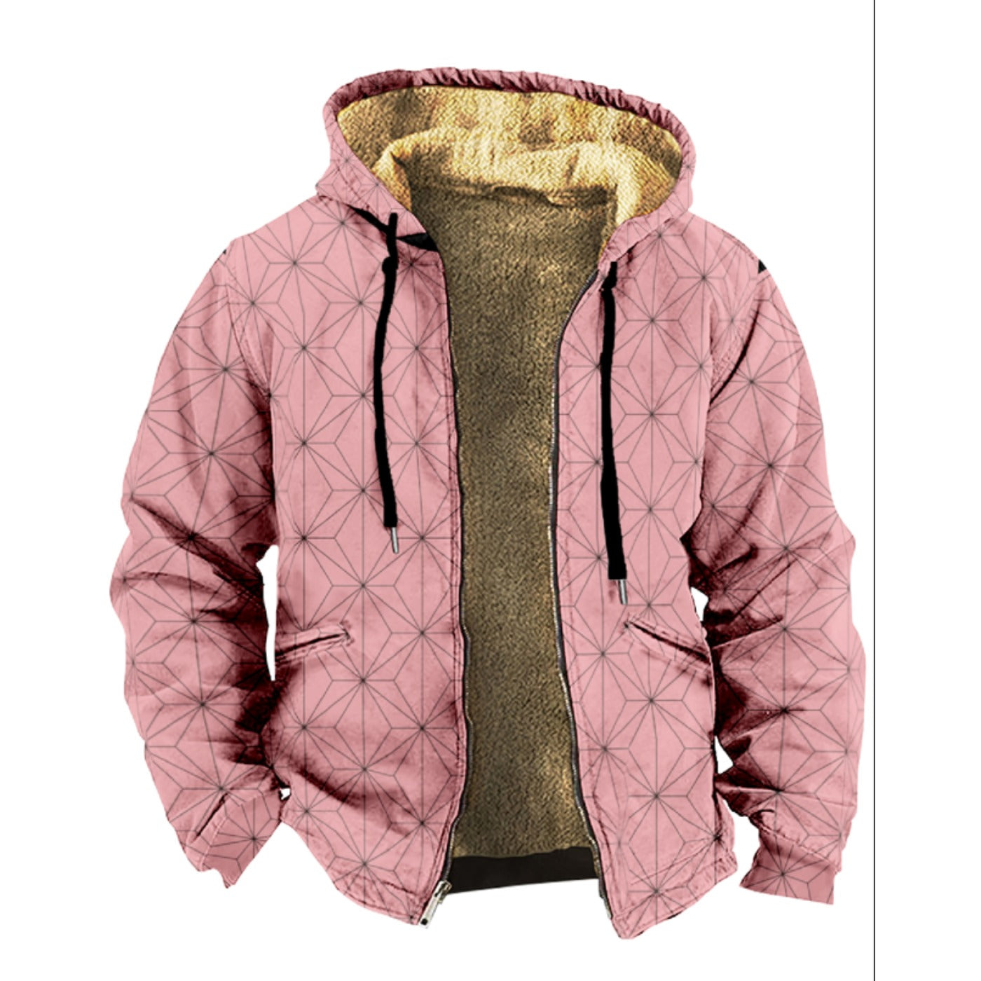 Emerald Blossoms - Demon Slayer, Nezuko Chan Pattern Print Wool Hooded Jackets For Hippie