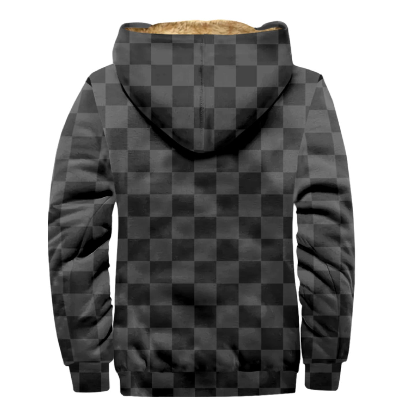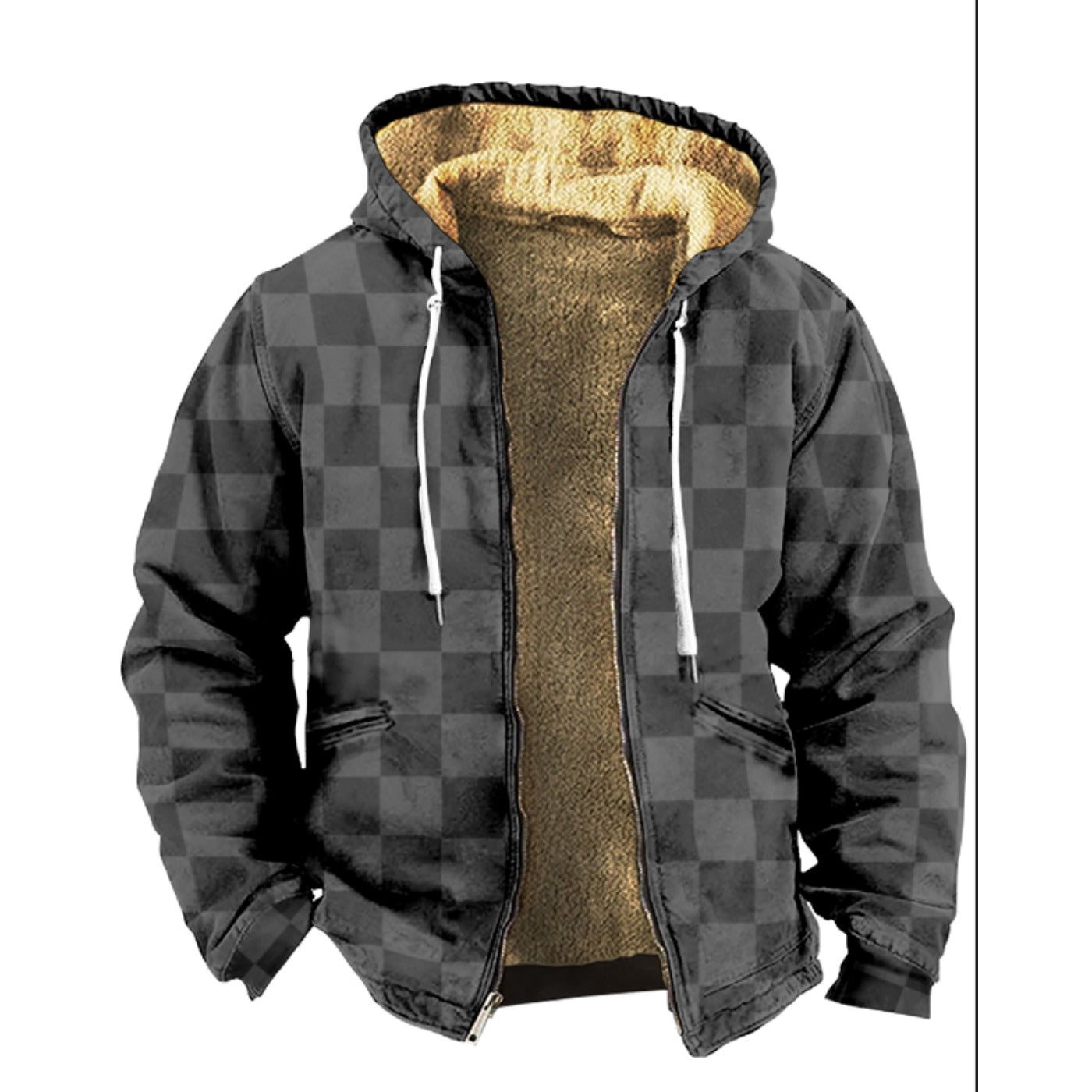 Emerald Blossoms - Retro Gray Grid Pattern Print Wool Hooded Jackets For Hippie
