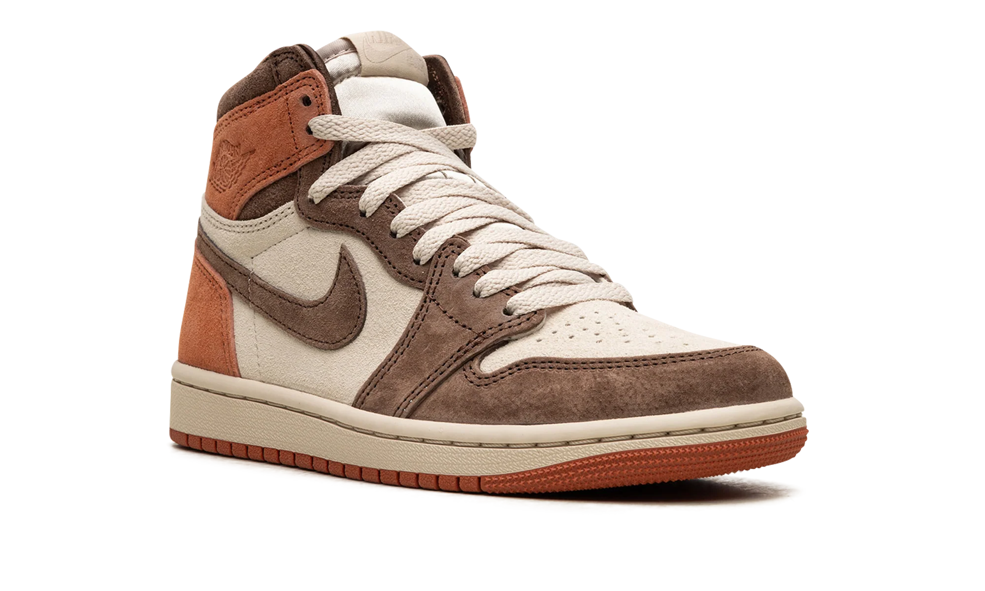 The Women’s Air Jordan 1 High OG “Dusted Clay” is a women’s-exclusive colorway of Michael Jordan’s first signature shoe with an earth tone design. The upper is complete with a cream suede base with a combination of Cacao Wow suede overlays on the toe, forefoot, eyelets, and Swoosh. Dusted Clay suede overlays can be found on the collar and heel. A debossed “Wings” logo appears on the collar, while “Nike Air” branding is seen on the tongue tag. Underfoot, a cream rubber midsole and a Dusted Clay rubber outsole complete the look.