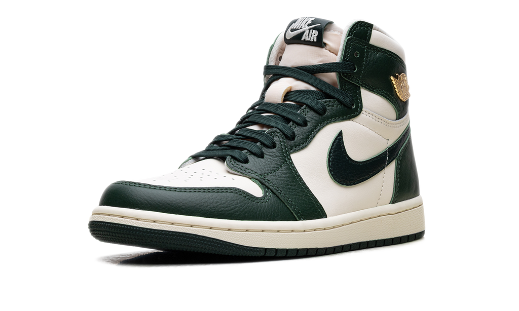 Step into a legendary new look with the Air Jordan 1 High OG Wmns "Fir," also known by its rich nickname, the "Fir Pro Green." This sophisticated, women's-exclusive sneaker blends premium Pale Ivory leather with striking, deep green overlays. Its classic high-top silhouette is elevated by a Coconut Milk midsole, giving it a stylishly vintage aesthetic. Finished with a brilliant gold-colored Wings logo on the collar, this versatile release offers a luxurious touch to an iconic design, effortlessly elevating any streetwear rotation.