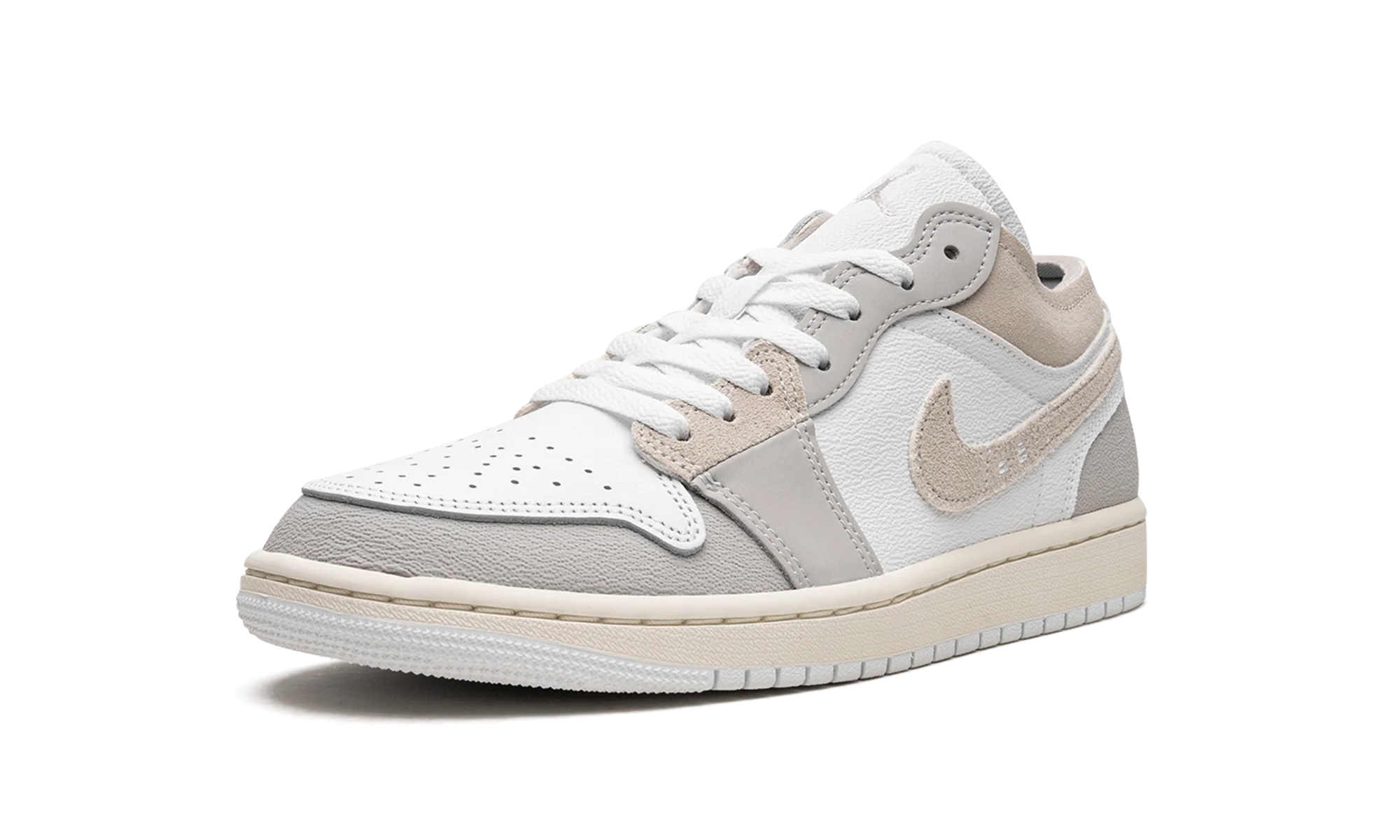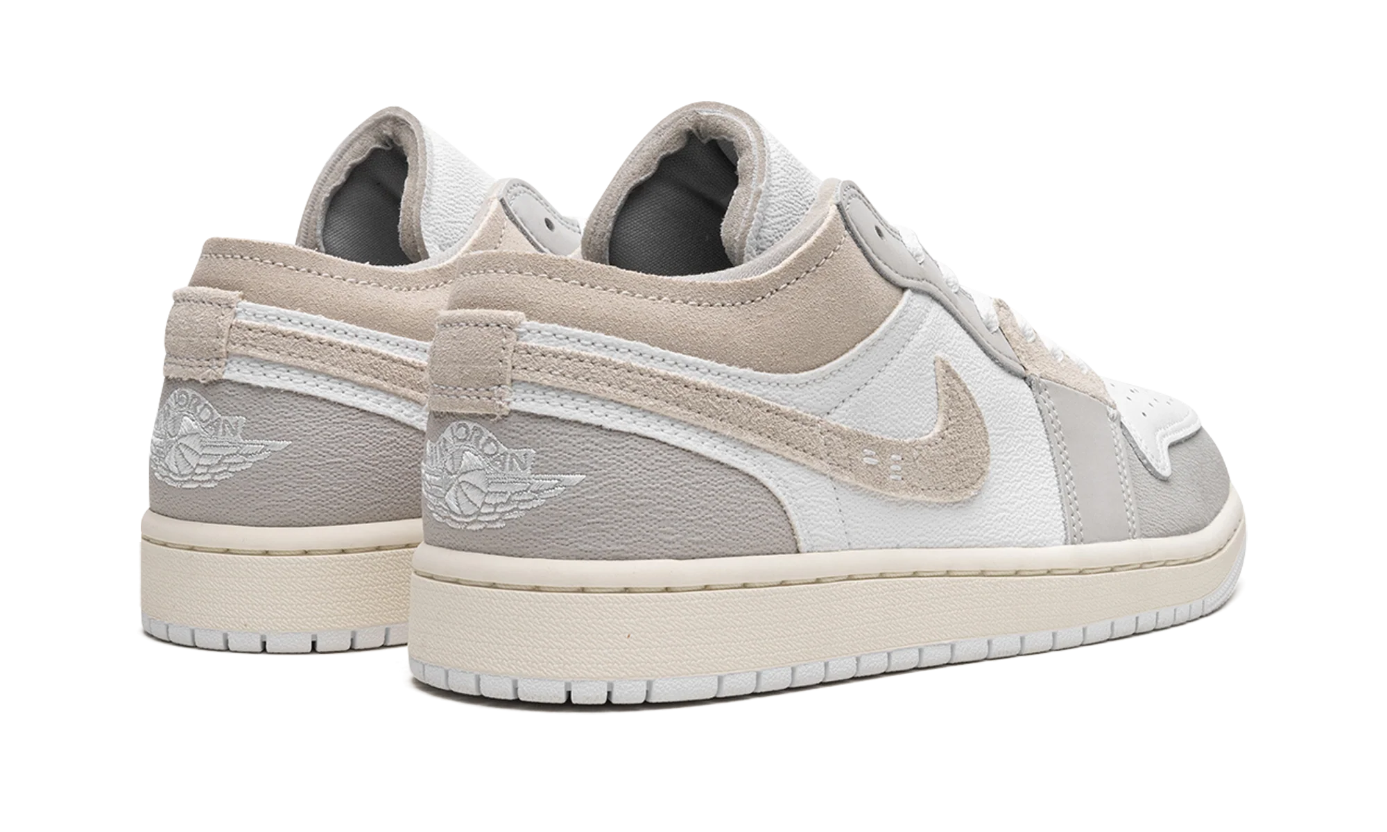 The Air Jordan 1 Low SE Craft "Tech Grey" is a version of the popular sneaker with an inside-out appearance. The Jordan 1 Low SE Craft “Tech Grey” updates the legacy silhouette’s iconic design with an appealing look that features mismatched panels in various textiles. White leather can be found on the mid-panel and on the raised perforated toe. A Light Orewood Brown suede Swoosh appears on the sides. The light shade of brown is also found on the lower eyelet panel and collar. Tech Grey leather and suede appear on the upper eyelet overlay and forefoot, and on the toe cap and heel, respectively.