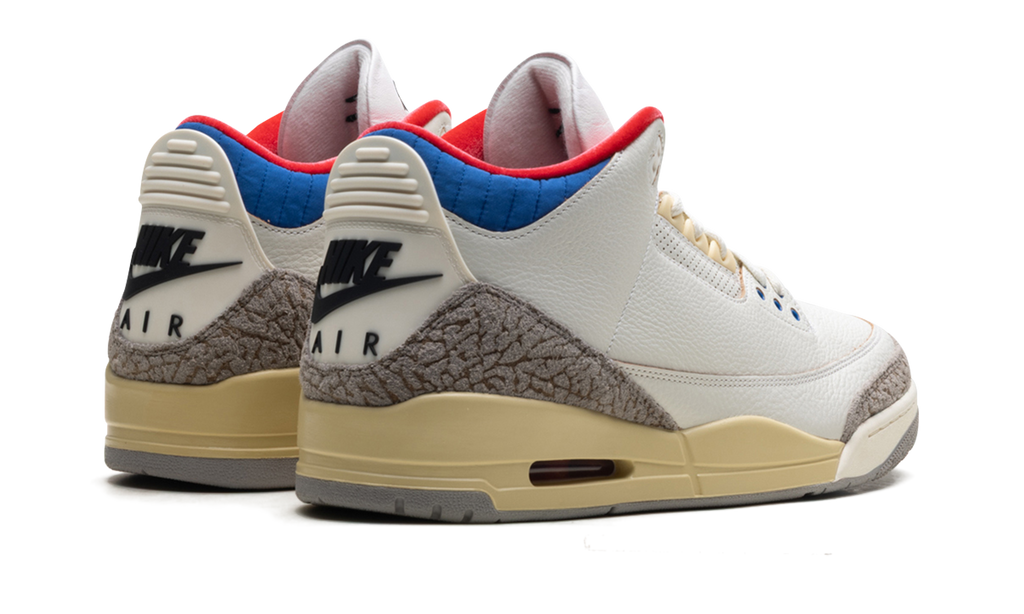 The Air Jordan 3 "Seoul 2.0" is a unique colorway of Michael Jordan's third signature shoe that honors the South Korean capital. The "Seoul 2.0" released in 2025 and followed the first "Seoul" AJ3 that came out in 2018. The "Seoul 2.0" Jordan 3 has the South Korea flag embroidered on the tongue and carries over the red and blue colors to the ankle and lining. The "Seoul 2.0" has a vintage-inspired midsole and lighter grey elephant print to distinguish it from the original.