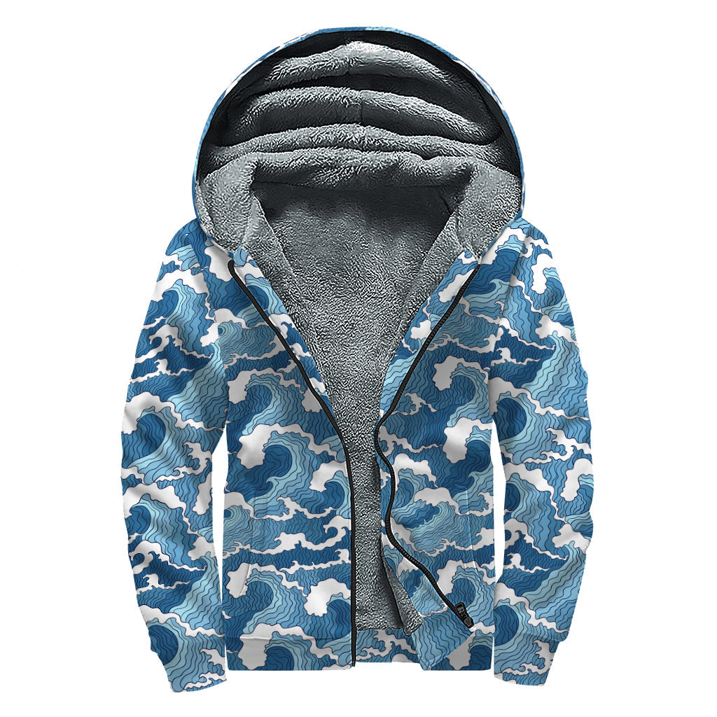 This Sherpa Lined Zip Up Hoodie is perfect for those who embrace the hippie lifestyle. Featuring a vibrant blue Japanese wave pattern print, this hoodie exudes a laid-back and free-spirited vibe. The cozy Sherpa lining adds an extra layer of warmth, making it ideal for chilly outdoor adventures or cozy nights in. The zip-up design allows for easy layering, while the hood adds a touch of added style and functionality. Perfect for adding a pop of personality to your wardrobe, this hoodie is a must-have for any modern-day hippie.