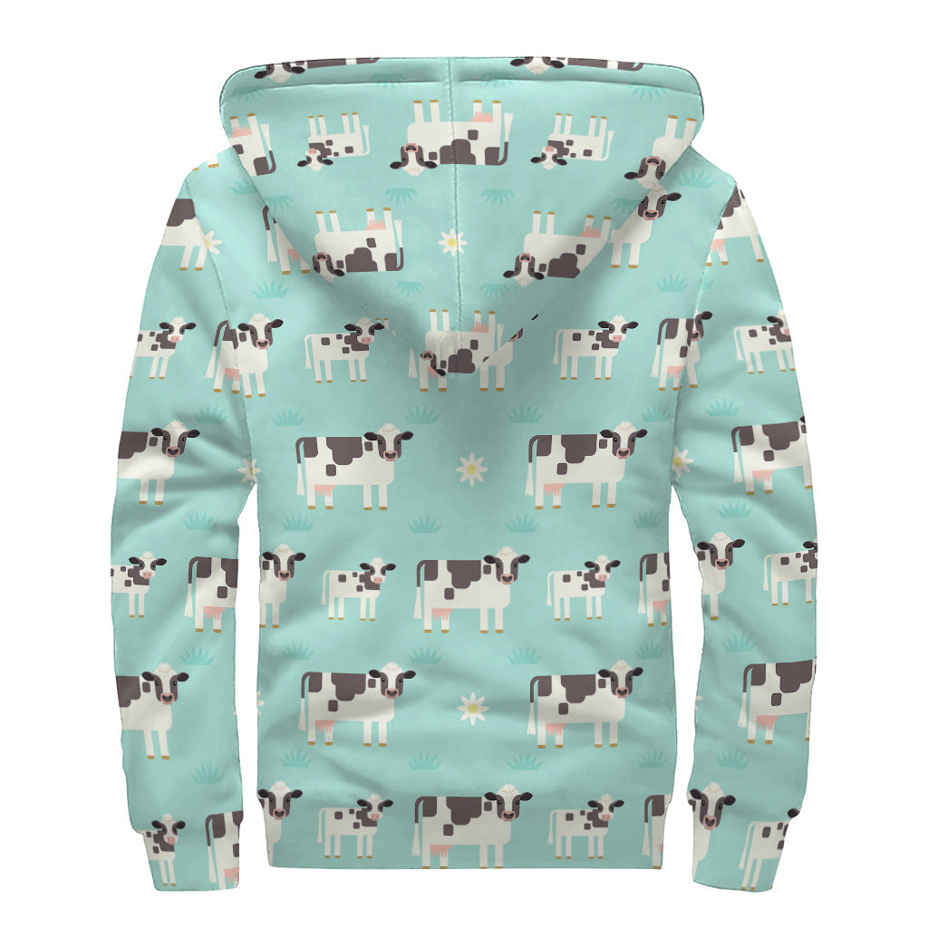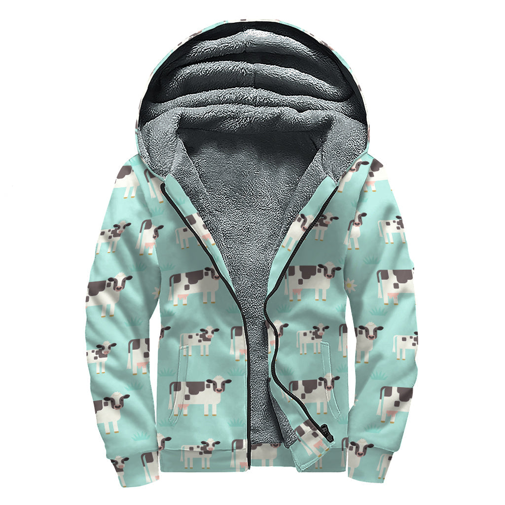 Cute Cow and Baby Cow Pattern Print Sherpa-Lined Zip Up Hoodie for the Free-Spirited Hippie
