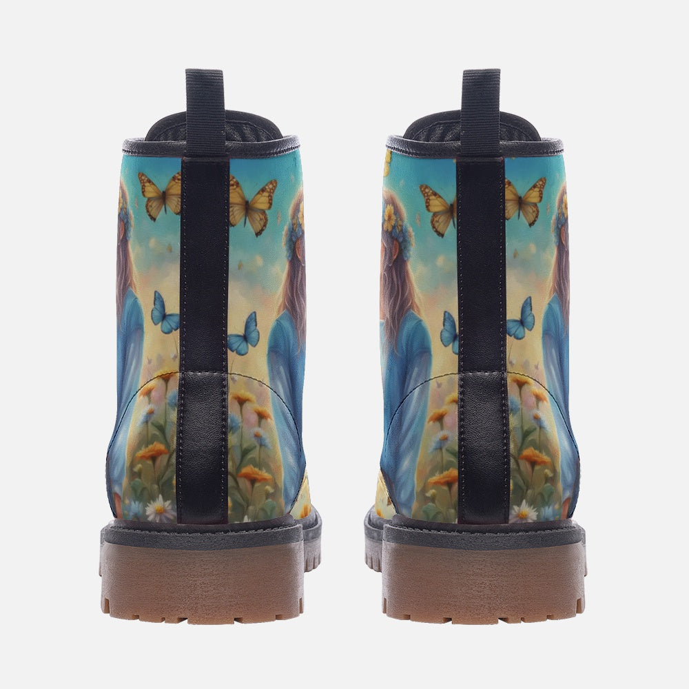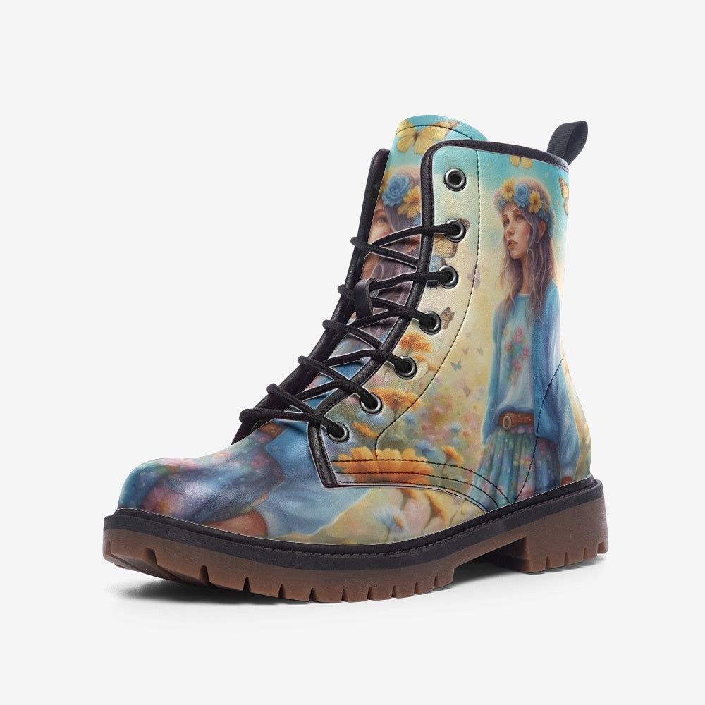 Step into a fantasy dream with the Emerald Blossoms - Fairy Girl Boots. Featuring a captivating design of a fairy girl lost in a field of blooming flowers, these casual leather boots capture the magical, free-spirited essence. Lightweight and crafted for comfort, they are perfect for the hippie who embraces nature and fantasy in their everyday style. Let your adventurous spirit soar with every step you take in these charming boots.