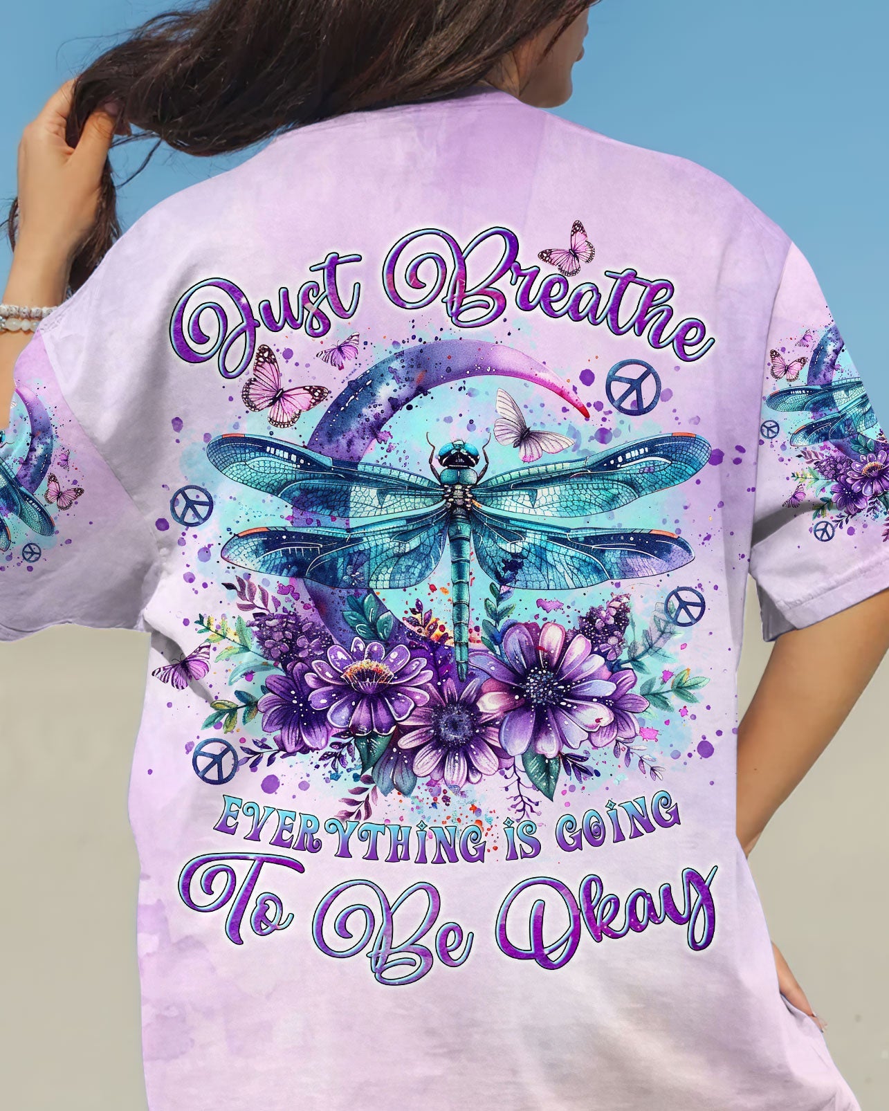 Emerald Blossoms - "Just Breathe" Dragonfly All Over Print Shirt