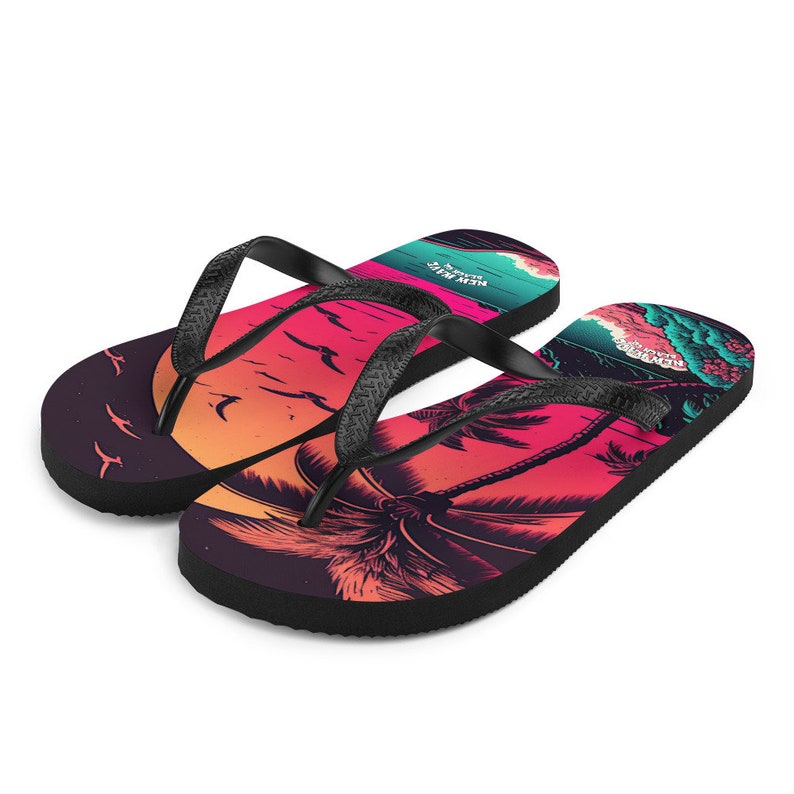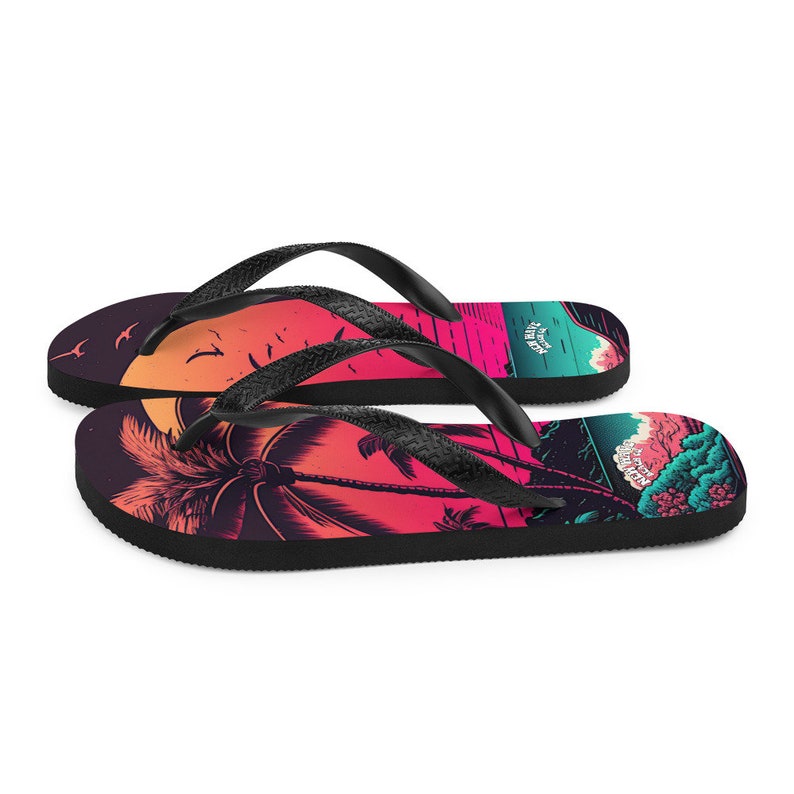 Introducing the Pink Palm Beach Sunset Flip Flops, a dazzling creation from Emerald Blossoms. Soak up the breathtaking colors of a seaside sunset with every step of these stylish and colorful flip-flops. Perfect for adding a touch of tropical chic to your summer wardrobe, they combine comfort with eye-catching design. Whether you're strolling along the beach or enjoying a leisurely day by the pool, these flip-flops promise to elevate your style and mood. Enjoy the beauty of summer with the Pink Palm Beach Sunset flip-flops, designed to capture the essence of coastal bliss.