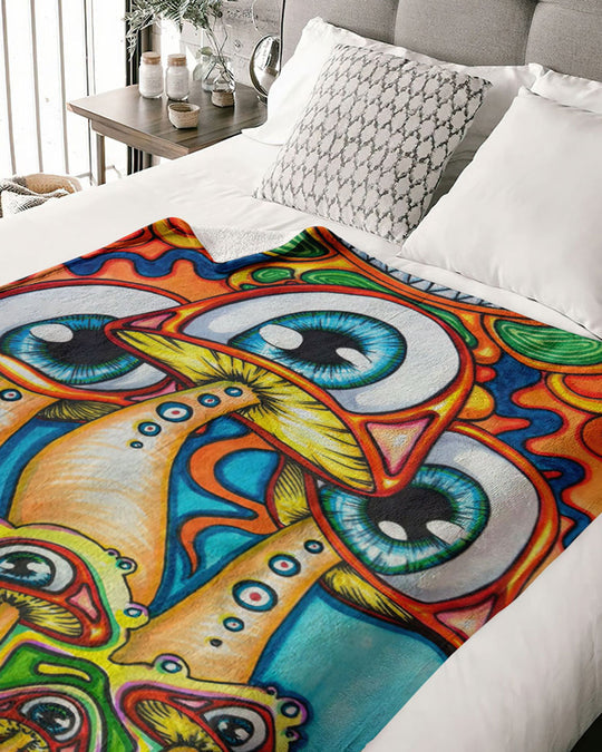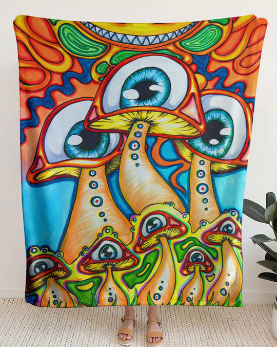 Emerald Blossoms - Psychedelic Eye Mushroom Fleece Blanket For Hippies
