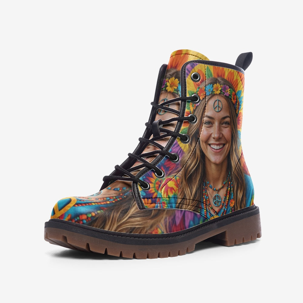 Show off your free spirit with the Stay Wild Flower Girl casual lightweight leather boots from Emerald Blossoms. Featuring a vibrant floral design that celebrates the beauty of nature and a carefree attitude, these boots are the perfect combination of style and comfort. Crafted from soft, lightweight leather, they offer a comfortable fit while making a bold, free-spirited statement. Ideal for those who love to express their individuality and stay connected to nature, these boots add a quirky charm to any outfit. Go on an adventure and let your wild flower spirit bloom!