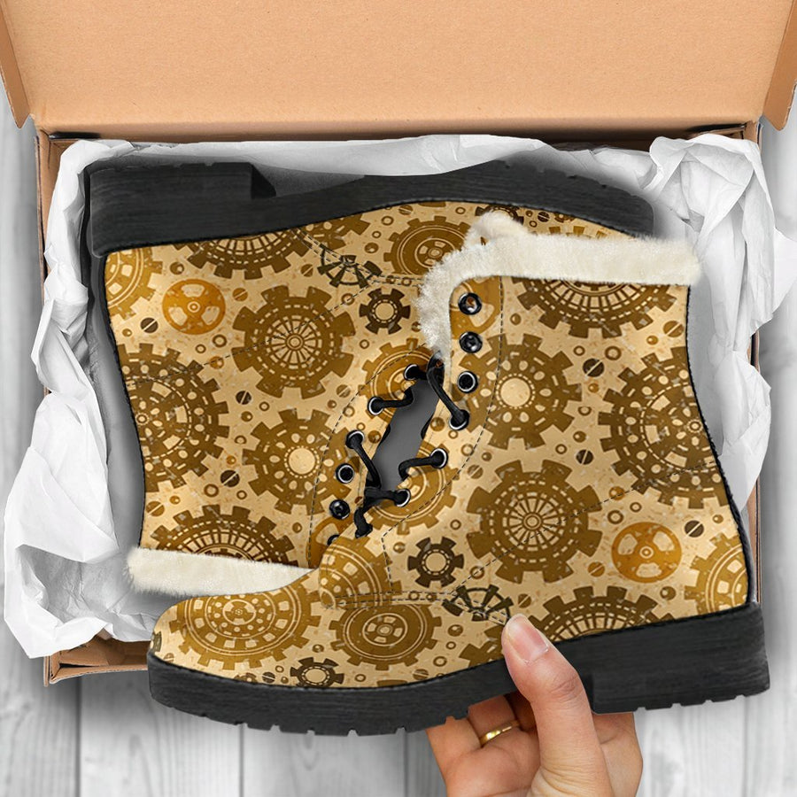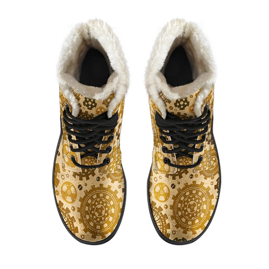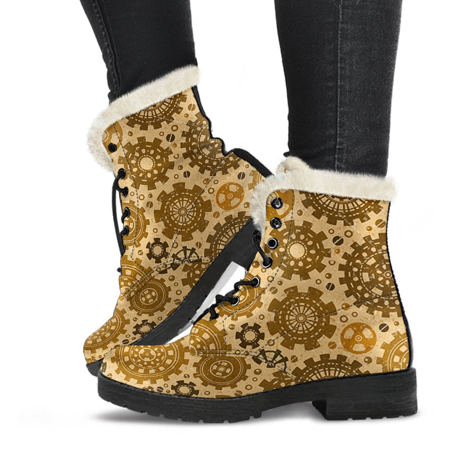 Step into a world of creative style with the Steampunk Emerald Blossoms Comfort Faux Fur Boots. Featuring an intricate steampunk design in luxurious vegan leather, these boots combine a classic mechanical aesthetic with modern comfort. Lined with cozy faux fur, they bring warmth and individuality to the festive season. Perfect for adding quirky flair to your winter wardrobe, these boots combine unique style with unparalleled comfort.