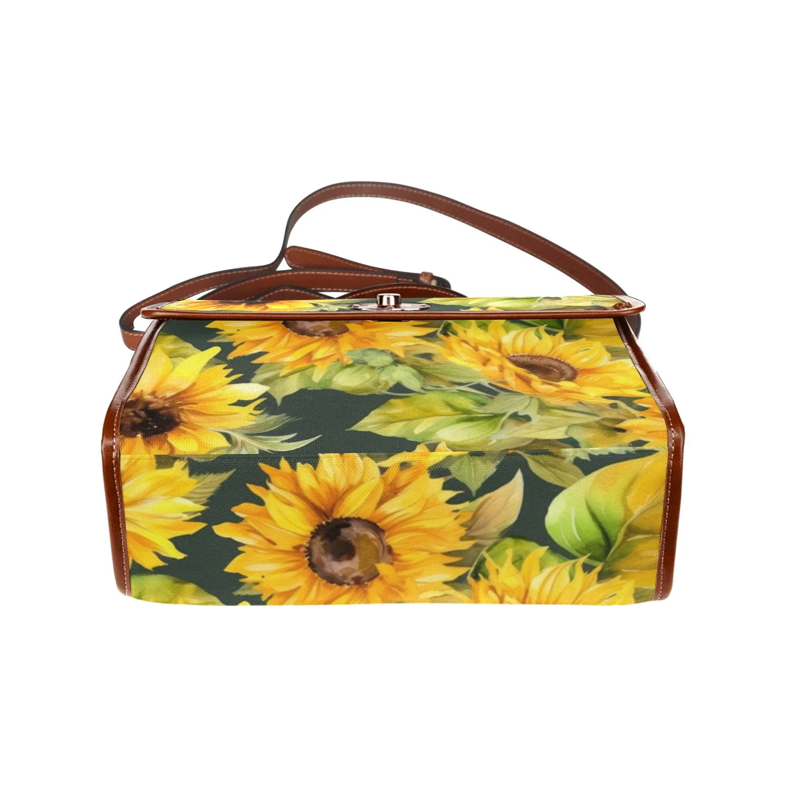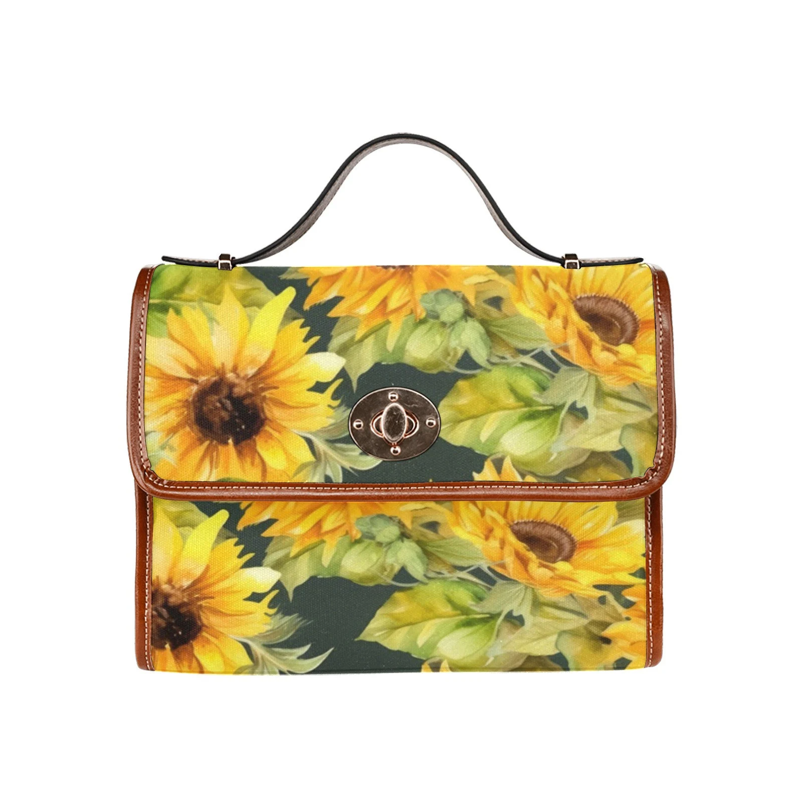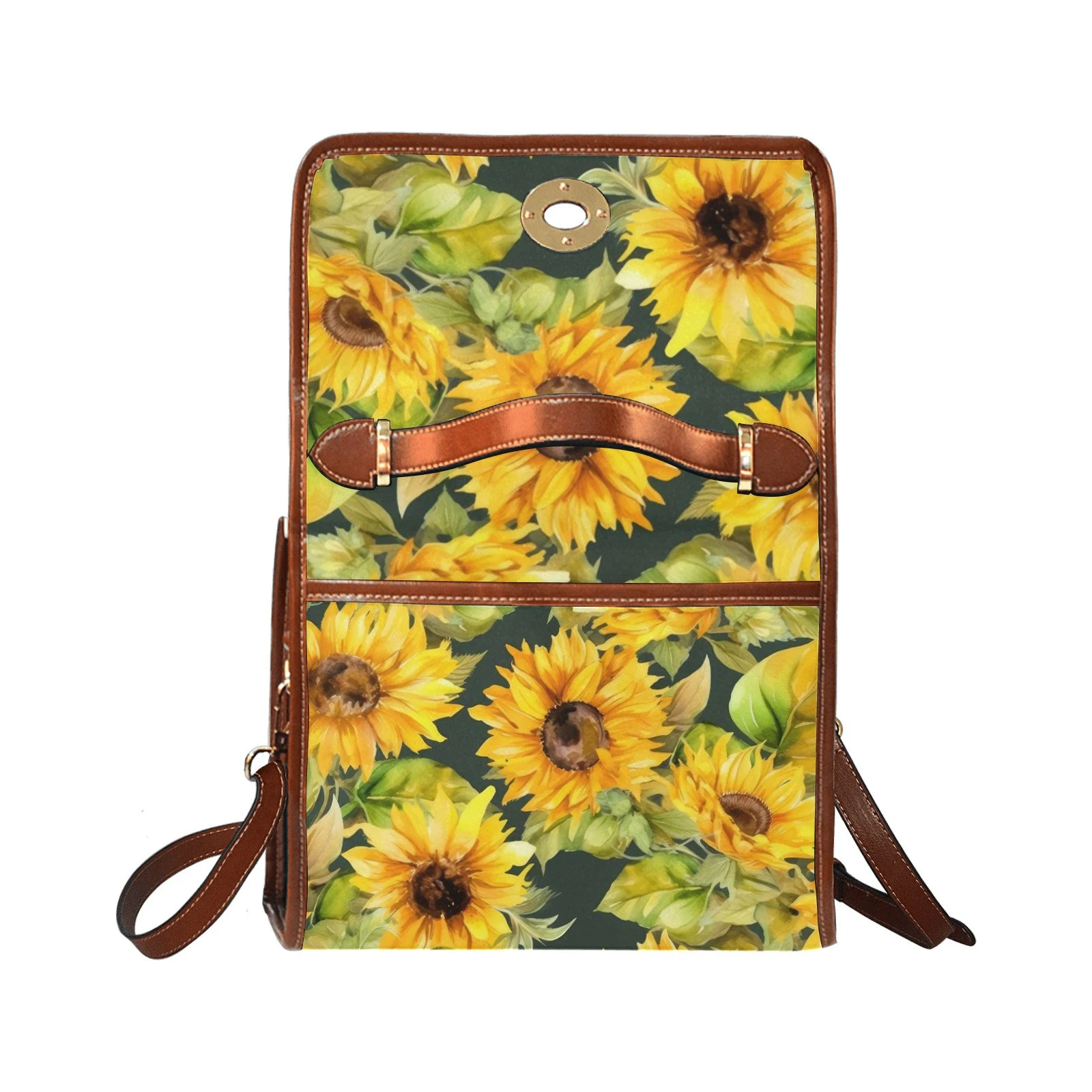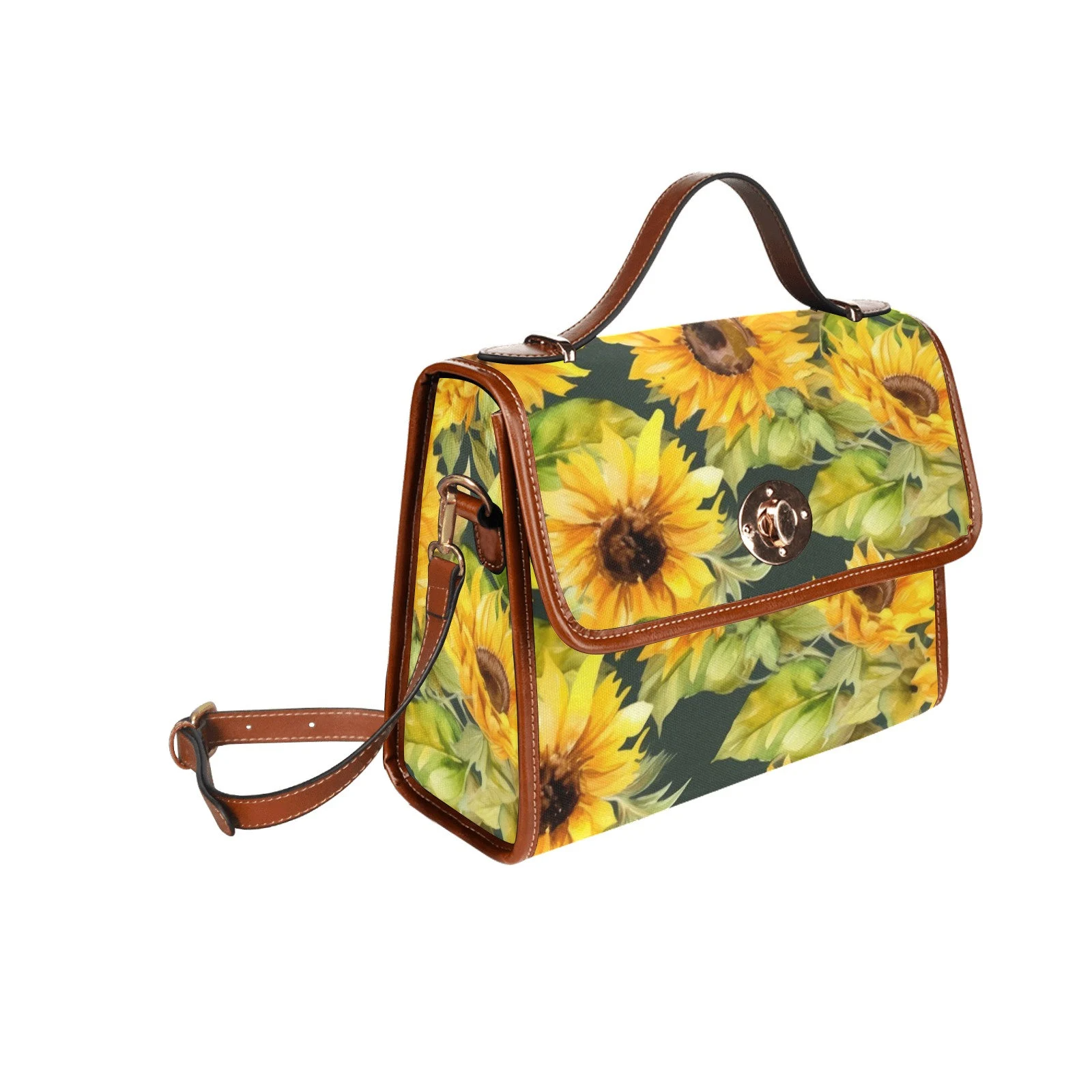 Emerald Blossoms - Sunflowers Canvas Satchel bag, Cute womens cross body purse, Yellow Flowers Bag, Summer hand bag, Adjustable shoulder strap bag