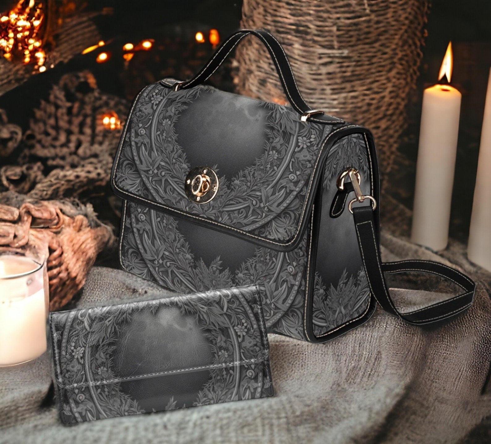 Introducing our Wicca Witch Vegan Moon Wallet, a celestial-inspired accessory that blends mystical elegance with eco-friendly style. Adorned with a striking moon motif, this wallet captures the essence of Wiccan spirituality and the mysticism of the moon. Crafted from high-quality vegan leather, it combines durability with aesthetics, perfect for carrying your essentials with captivating charm. Ideal for those who love celestial themes and seek accessories that reflect their spiritual connection to the moon as well as their love for mystical aesthetics.