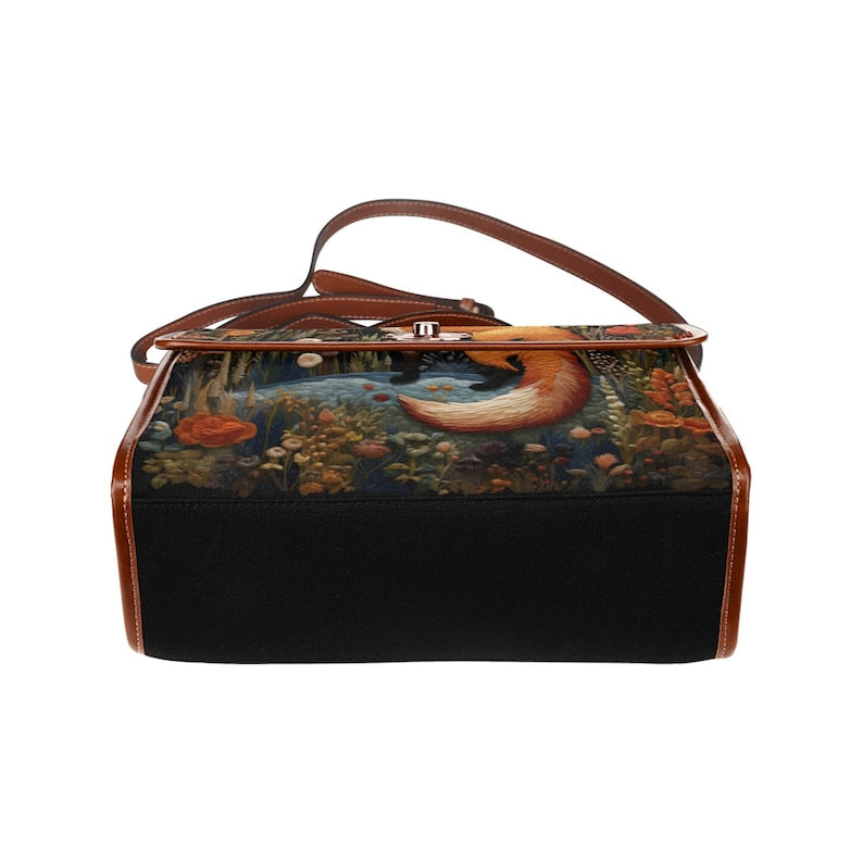 Emerald Blossoms - Faux-Embroidered Fox and Floral Handbag For Hippies