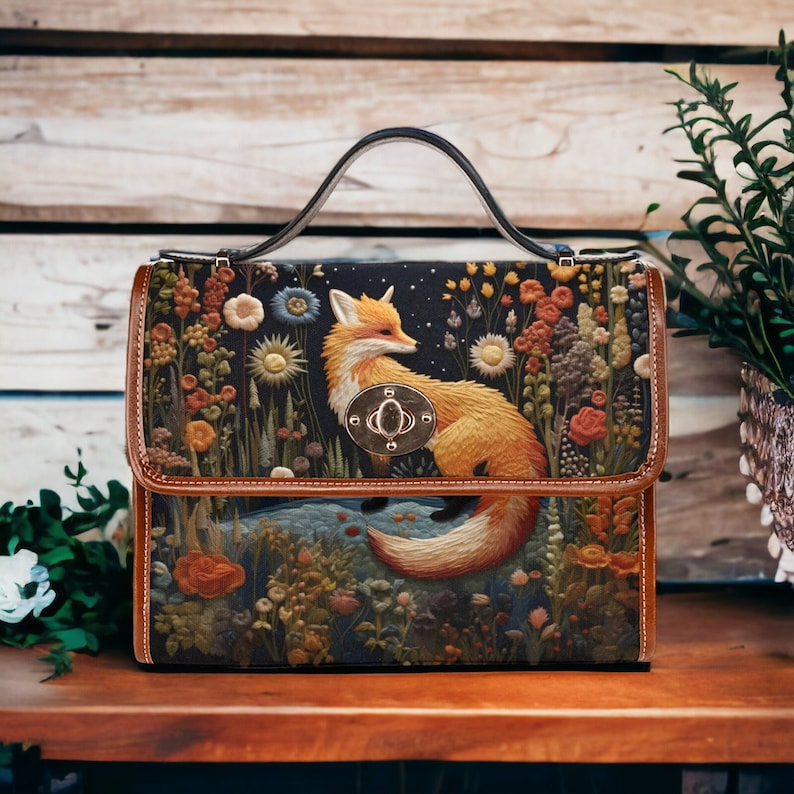 Introducing our Faux Embroidered Flower and Fox Handbag, a fun and unique accessory that showcases the charm of nature with artistic flair. Adorned with a faux embroidered fox and floral design, this handbag blends rustic elegance with woodland charm. Crafted from durable materials, it combines practicality with unique craftsmanship, perfect for carrying the essentials with a touch of surprise. Ideal for those who love nature-inspired fashion and seek accessories that express their love for creative designs and natural motifs.