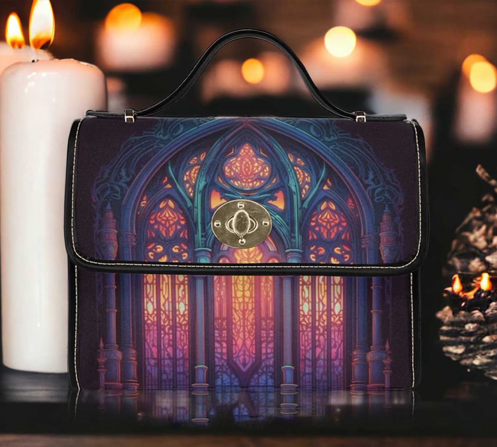 Introducing our Medieval Blue Pink Glass Canvas Bag, a beautiful combination of historical elegance and vibrant color. Adorned with intricate patterns inspired by stained glass in tones of pink and blue, this bag represents the essence of medieval art. Crafted from durable canvas, it combines practicality with artistic flair, perfect for storing essentials with timeless sophistication. Ideal for those who appreciate the beauty of ancient craftsmanship and seek accessories that make a mark with their unique design and historical inspiration.