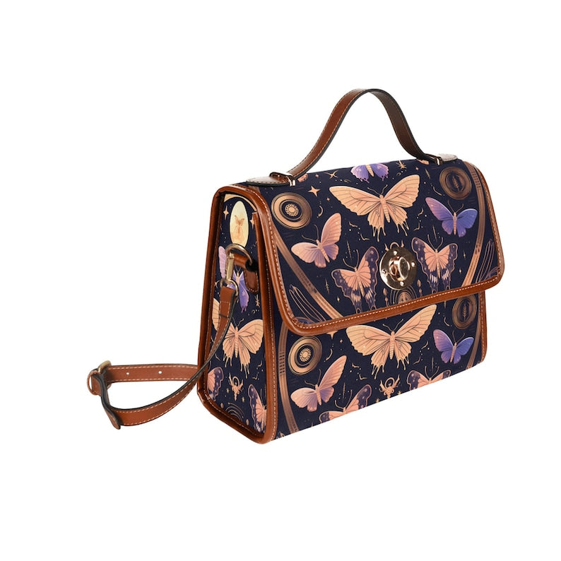 Emerald Blossoms - Satchel Colorful Butterflies Moth Pink Bag For Hippies