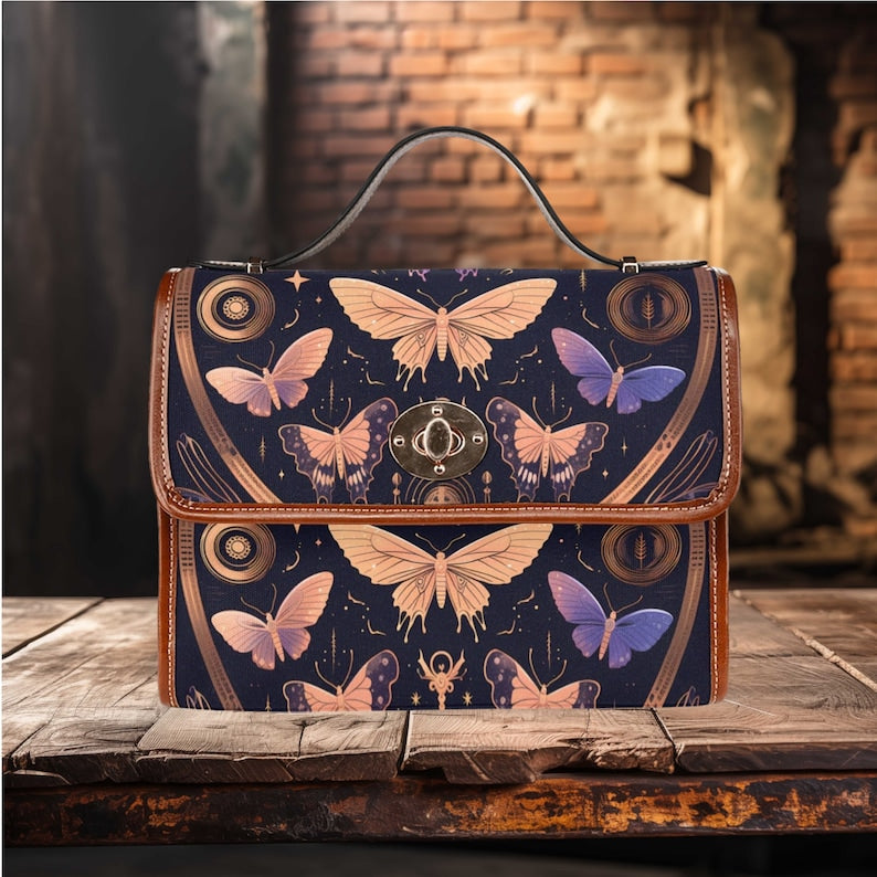 Introducing our colorful Butterfly and Moth Bags, a vibrant and whimsical accessory that celebrates the beauty of nature and its winged creatures. Adorned with colorful butterfly and moth motifs against a soft pink background, this bag embodies the essence of natural charm and whimsy. Crafted from durable materials, it combines practicality with artistic flair, perfect for storing essentials with a touch of colorful elegance. Ideal for those who appreciate the delicate grace of butterflies and moths, looking for accessories that reflect their love of vibrant colors and nature-inspired patterns.