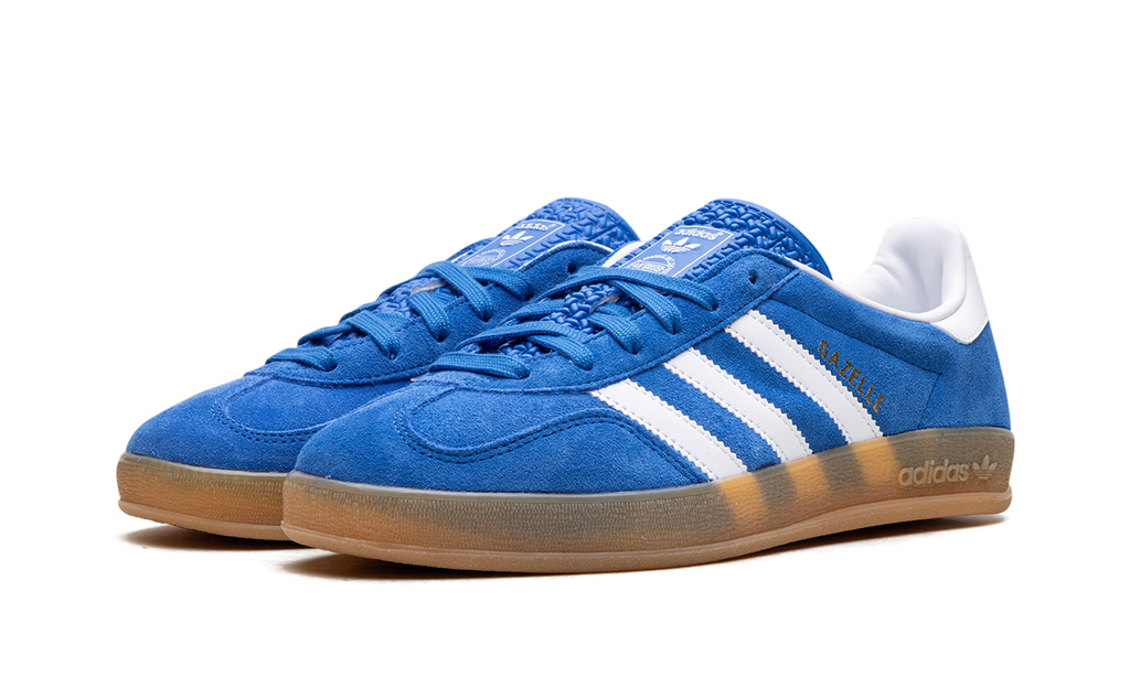 The Adidas Gazelle Indoor "Blue" brings a vibrant update to a classic silhouette. This sneaker features a striking blue suede upper contrasted by crisp white leather three-stripes and a heel tab. It is elevated with a distinctive, translucent gum rubber outsole that gives it a vintage, indoor-sport aesthetic. A timeless design, the Gazelle Indoor combines retro appeal with a modern pop of color, making it a versatile shoe for everyday wear.