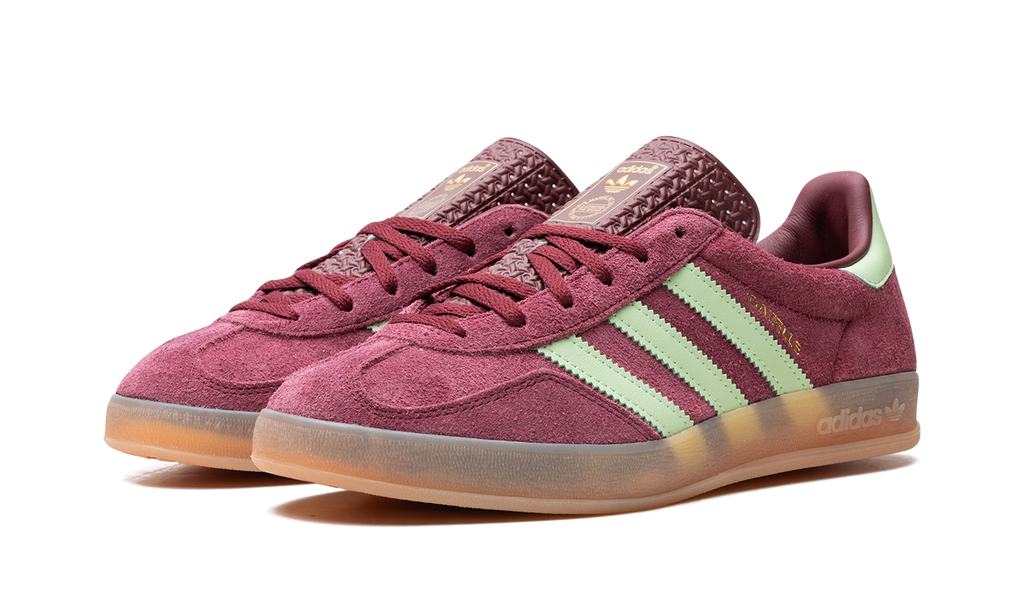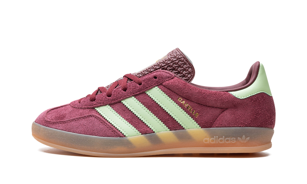 The adidas Gazelle Indoor “Shadow Red/Semi Spark Green” is a colorway of the retro shoe with a bold, eye-grabbing red look. On the adidas Gazelle Indoor “Shadow Red/Semi Spark Green,” the upper is complete with a Shadow Red suede construction with Semi Spark Green leather Three Stripes on the sides. More Semi Spark Green accenting can be found on the leather heel tab. Gold “Gazelle” branding appears on the lateral side of the midfoot. A semi-translucent Gum rubber midsole completes the look.