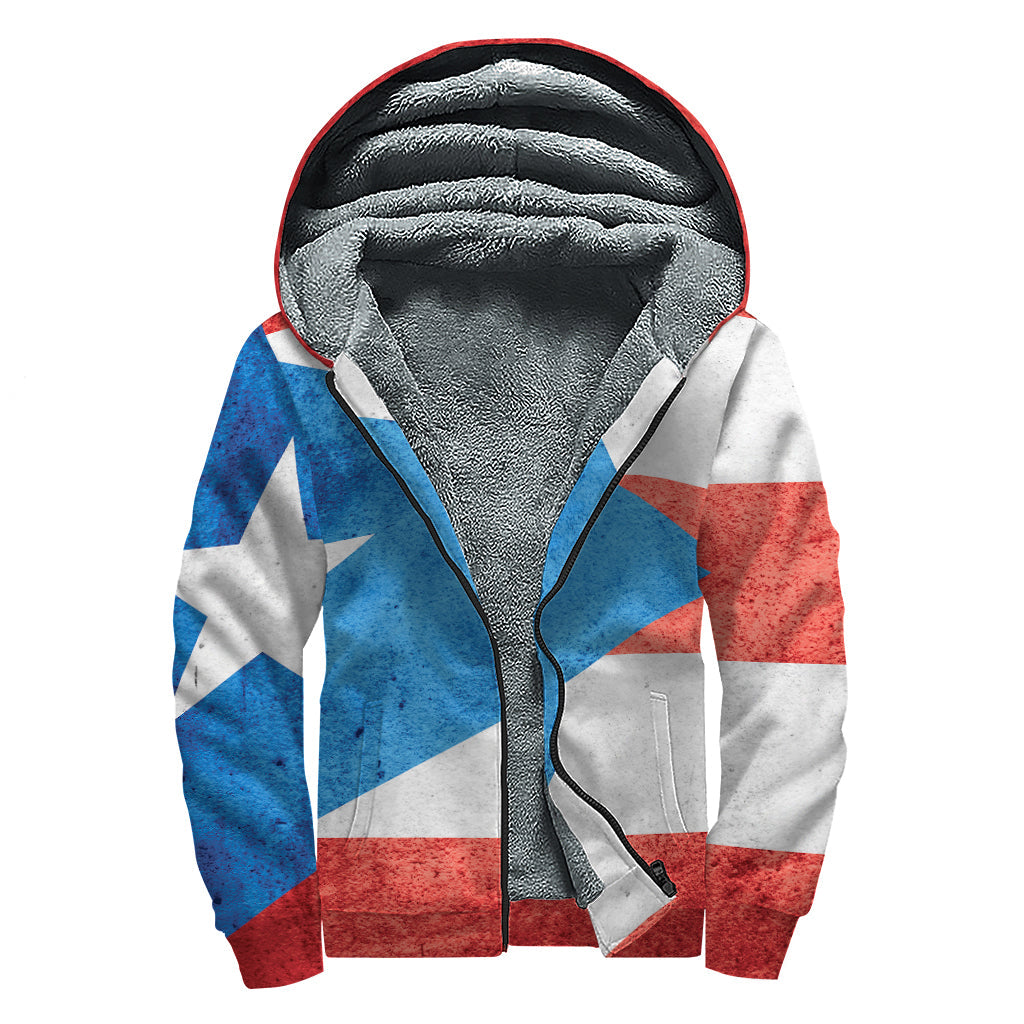 This Sherpa Lined Zip Up Hoodie is perfect for hippies who embrace a laid-back, bohemian style. Featuring a unique Grunge Puerto Rican flag print, this hoodie adds a cool and edgy vibe to any outfit. The Sherpa lining provides extra warmth and comfort, making it a great choice for chilly days. Whether you're heading to a music festival or just hanging out with friends, this hoodie is sure to make a statement. Made with high-quality materials, it is durable and long-lasting, perfect for any free-spirited individual looking to add a touch of retro flair to their wardrobe.