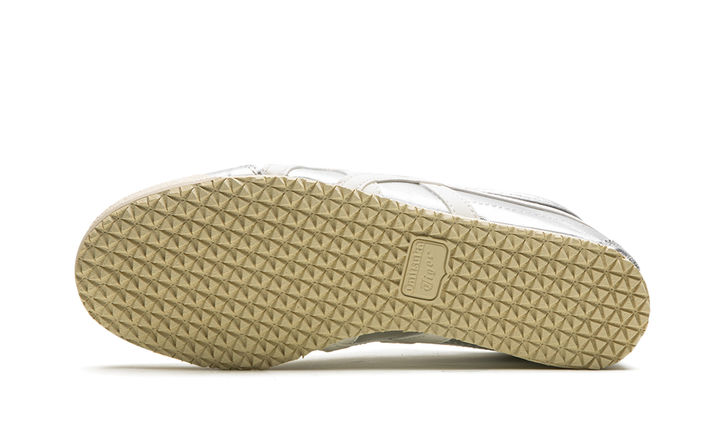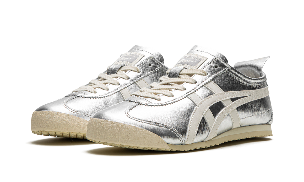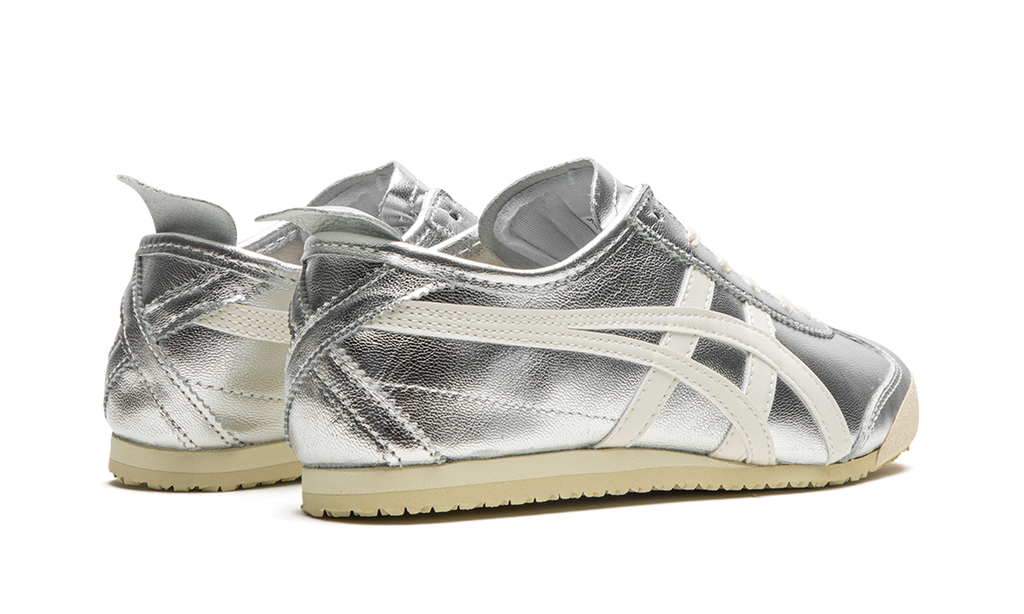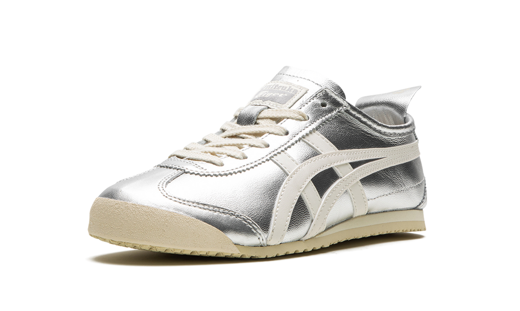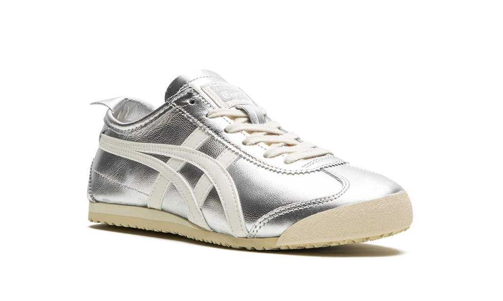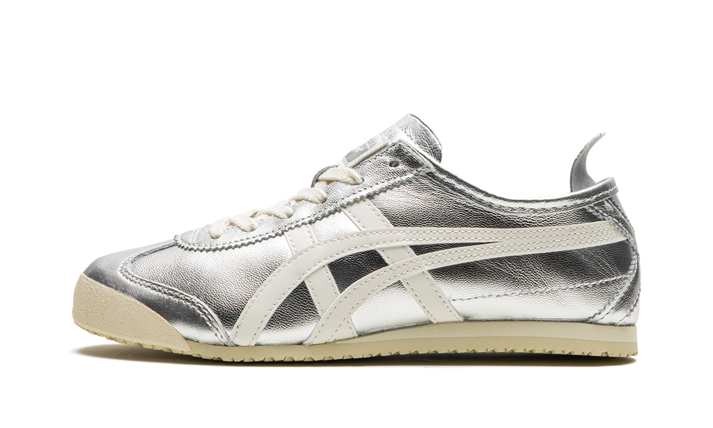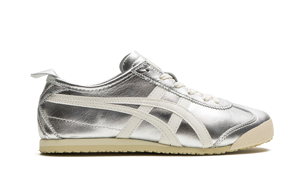 The Onitsuka Tiger Mexico 66 “Silver” is a colorway of the retro-inspired lifestyle shoe with a can’t-miss look. The Onitsuka Tiger Mexico 66 was originally released as a performance running shoe in the 1960s in Mexico City before becoming a casual shoe in the present day. The modern iteration of the model is largely similar to the original edition from the ‘60s, but is made with contemporary materials and colors. The shoe has a silver leather construction with a metallic finish with white tiger stripes on the sides. Classic “Onitsuka Tiger” branding is located on the tongue tag. A vintage-inspired, thin cream and tan sole completes the look.