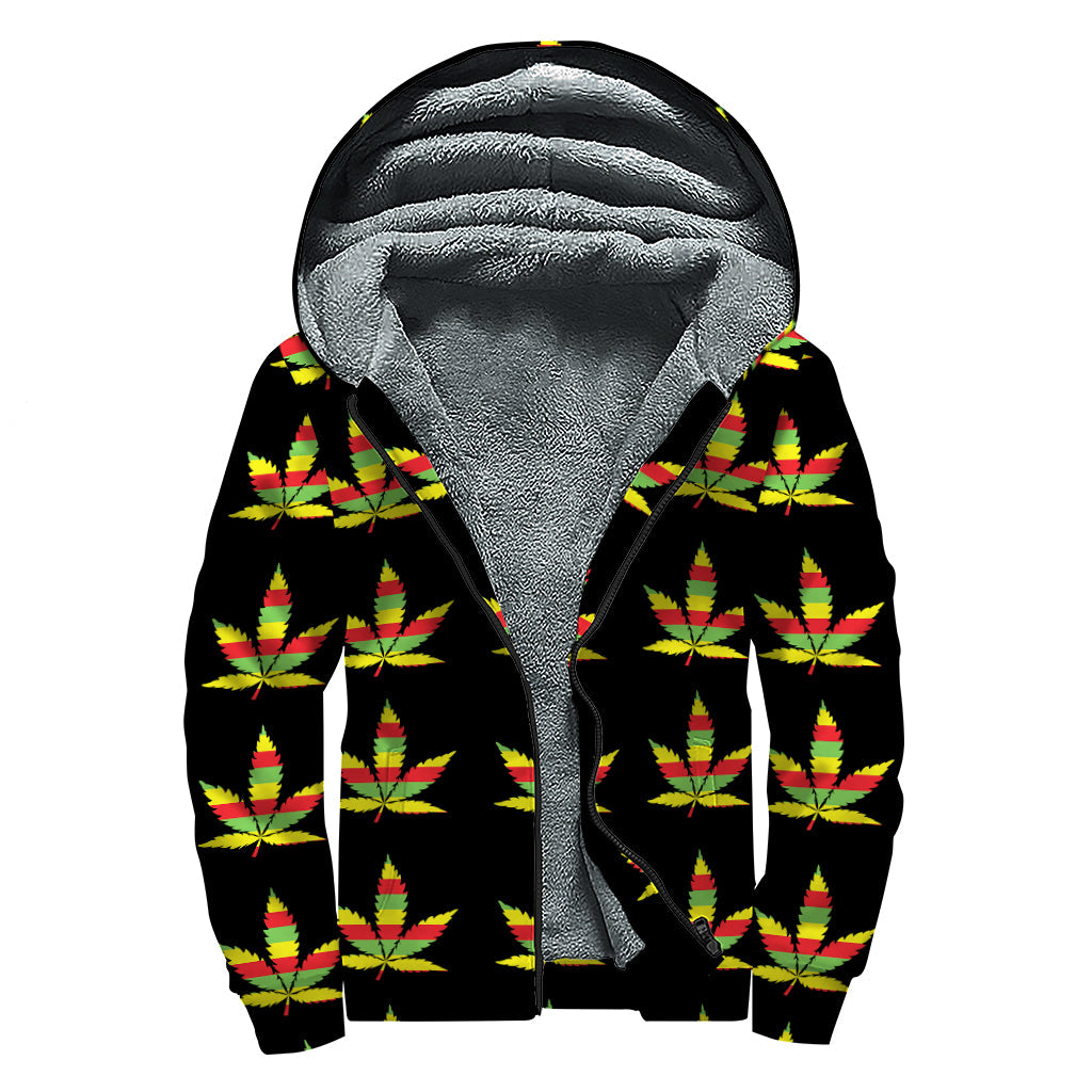 Rasta Flag Pattern Sherpa Lined Zip Up Hoodie for Hippies - 1