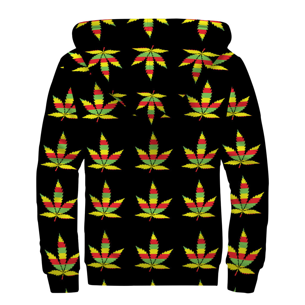 Rasta Flag Pattern Sherpa Lined Zip Up Hoodie for Hippies - 3