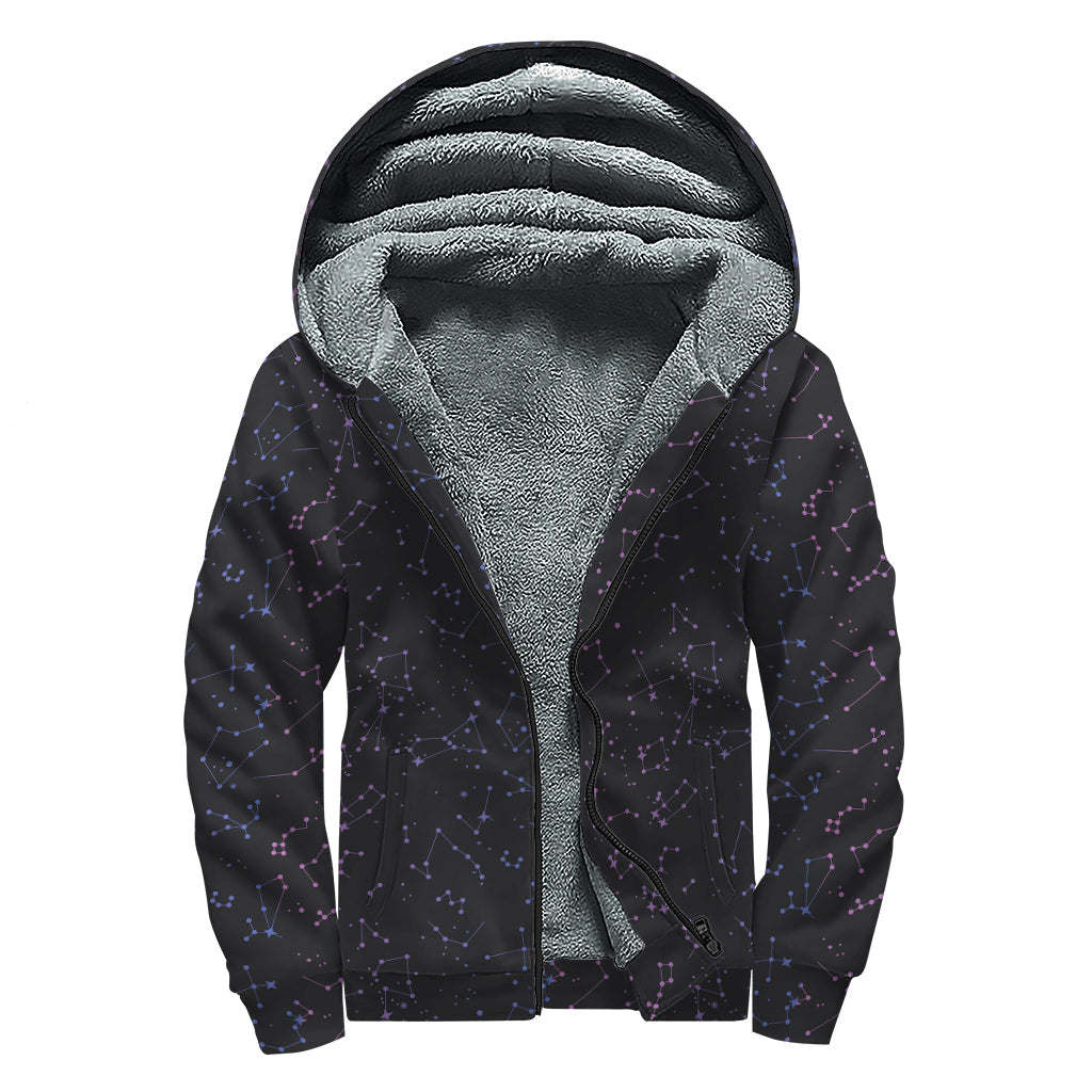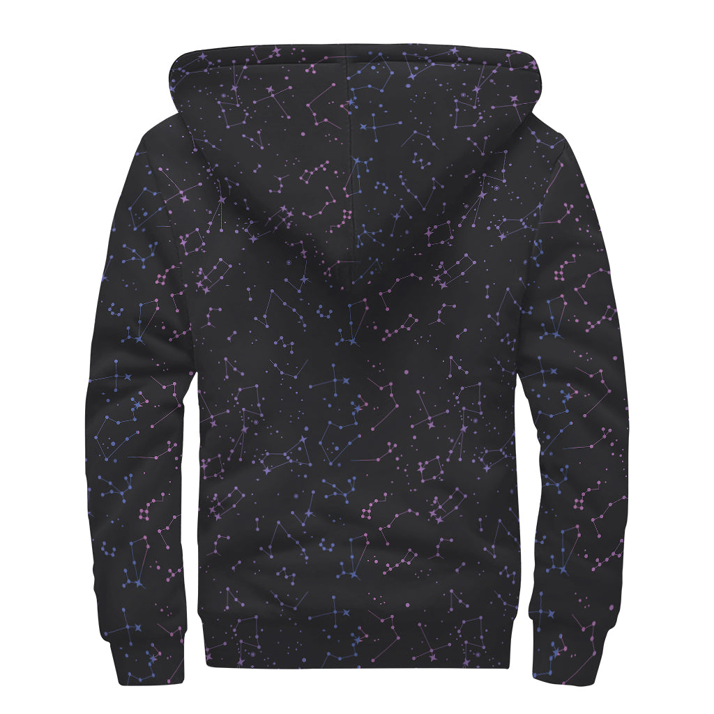 Starry Nights: Purple Zodiac Stars Sherpa Lined Zip Up Hoodie
