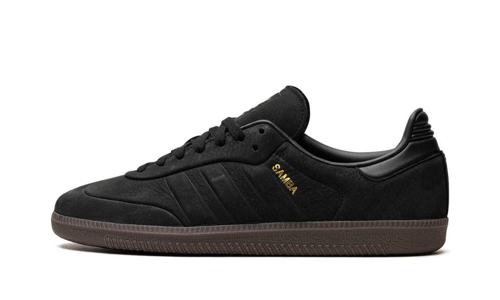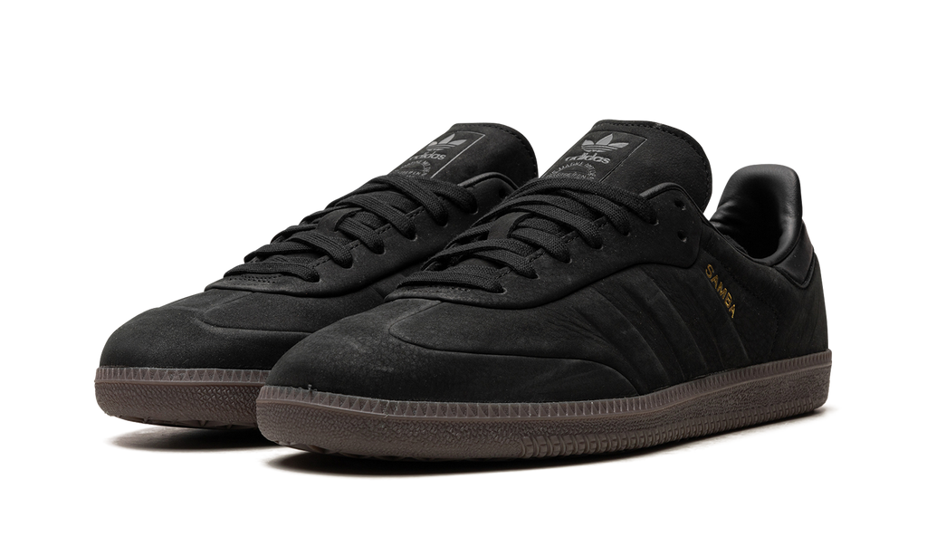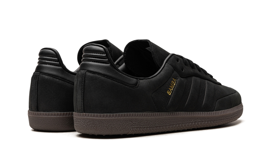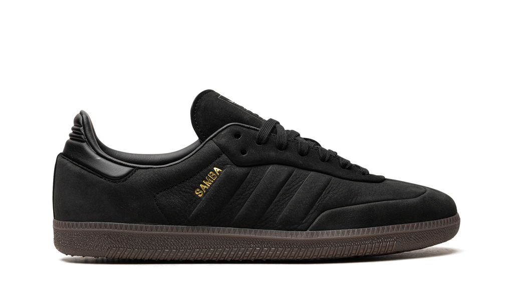 The adidas Samba “Core Black/Gum” is a black-based colorway of the popular sneaker by the German footwear company. Versatile in every sense of the word, the Samba in “Core Black/Gum” features a black nubuck construction with a tonal overlay on the toe. Molded Three Stripes branding is seen next to gold “Samba” detailing on the side. A black leather heel tab and black nubuck tongue with tonal “adidas Samba” branding add to the look. Underfoot, a dark gum rubber sole completes the stealthy appearance of this premium Samba. Release date: September 15, 2023