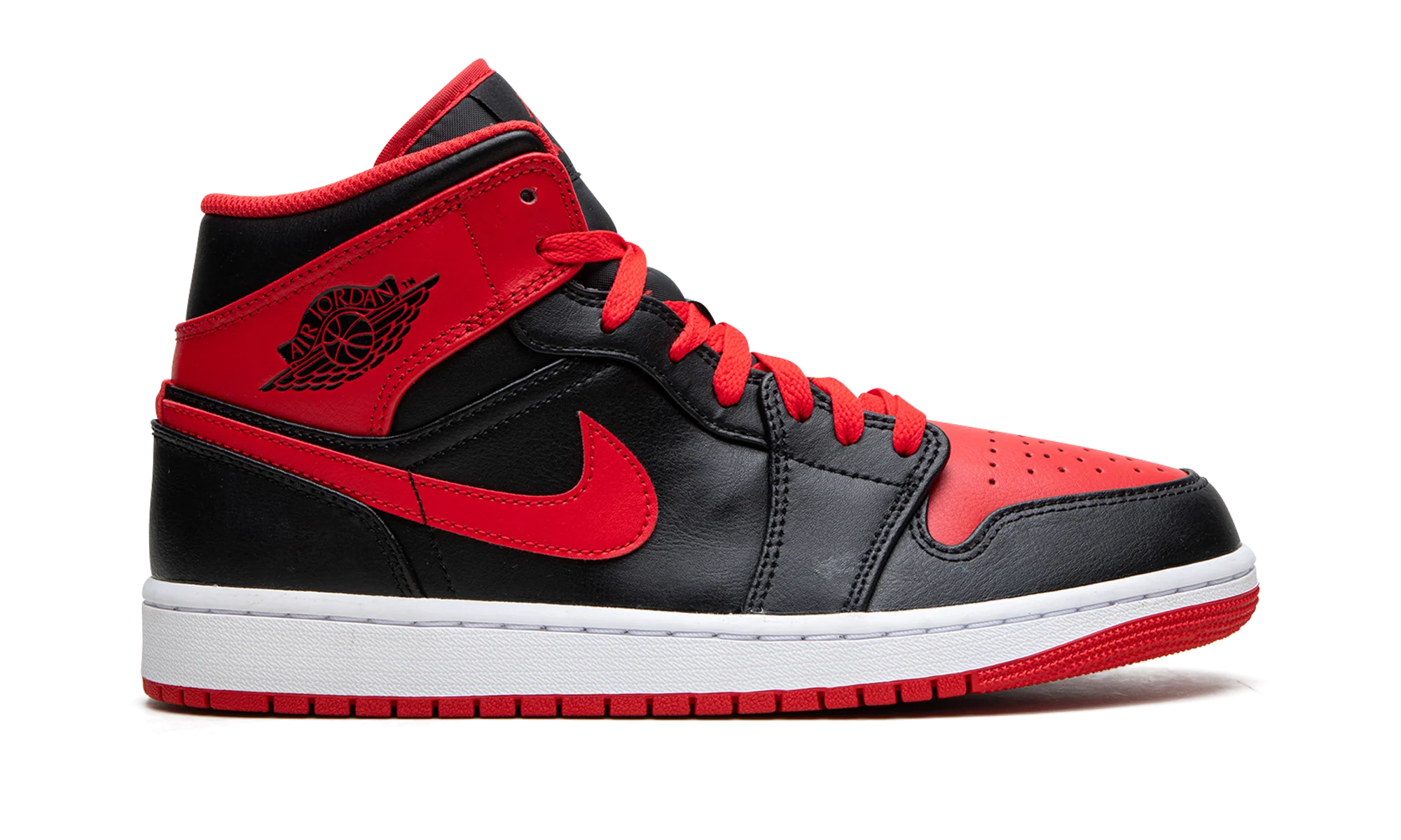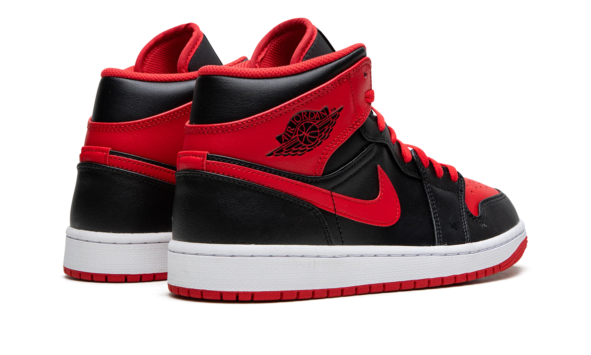 The Air Jordan 1 Mid “Alternate Bred” is a modified version of the classic, original Jordan 1 colorway that debuted in 1985. As its name suggests, the “Alternate Bred” switches up the look of the Air Jordan 1’s “Bred” makeup by changing its black-and-red color block ever so slightly. The “Alternate Bred” features a Fire Red leather perforated toe, while the rest of the base is designed in black leather. A Fire Red leather Swoosh appears on both sides of the shoe. A red leather overlay is found on the collar with a black “Wings” logo. Underfoot, a white rubber midsole and Fire Red outsole complete the look.