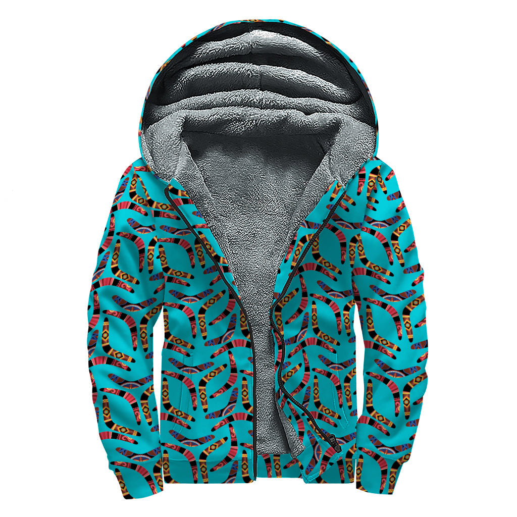 This Australian Aboriginal Boomerang Print Sherpa Lined Zip Up Hoodie is the perfect addition to any hippie's wardrobe. Made with a soft and cozy sherpa lining, this hoodie will keep you warm and comfortable all day long. The boomerang print gives it a unique and eye-catching look that is sure to turn heads wherever you go. Whether you're hitting up a music festival or just hanging out with friends, this hoodie is the perfect way to showcase your hippie style.