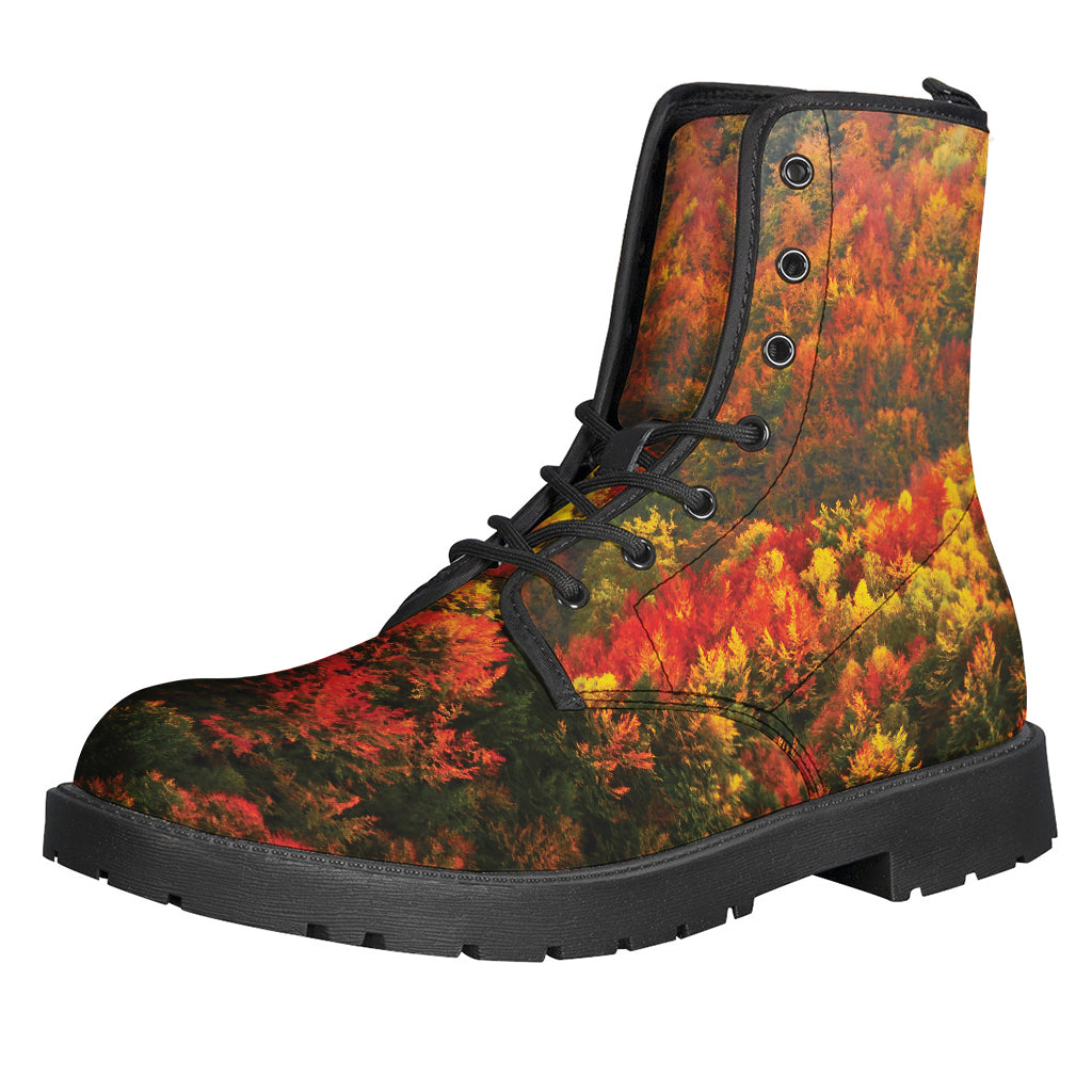 These Leather Lightweight Boots are a stylish and comfortable choice for hippies who want to add a unique touch to their wardrobe. Featuring a beautiful autumn mountain print, these boots are perfect for showcasing your love for nature and the great outdoors. The lightweight design makes them ideal for all-day wear, whether you're out exploring the wilderness or dancing at a music festival. The high-quality leather construction ensures durability and longevity, while the lace-up closure allows for a customizable fit. Add a touch of hippie flair to any outfit with these distinctive boots that are sure to turn heads wherever you go.