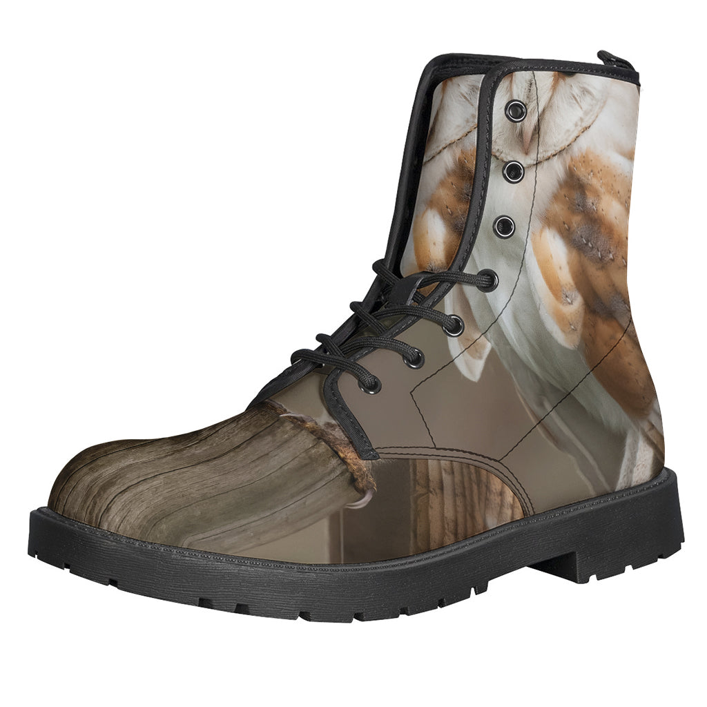 Barn Owl Print Leather Boots: Embrace Your Inner Hippie Style with Lightweight Comfort - 1