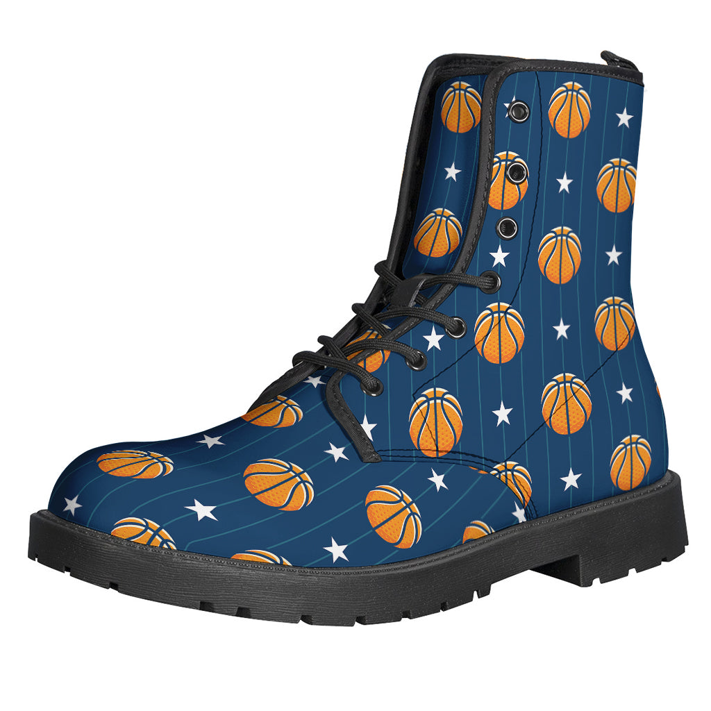 Basketball and Star Pattern Leather Boots for Boho Chic Hippies - 1