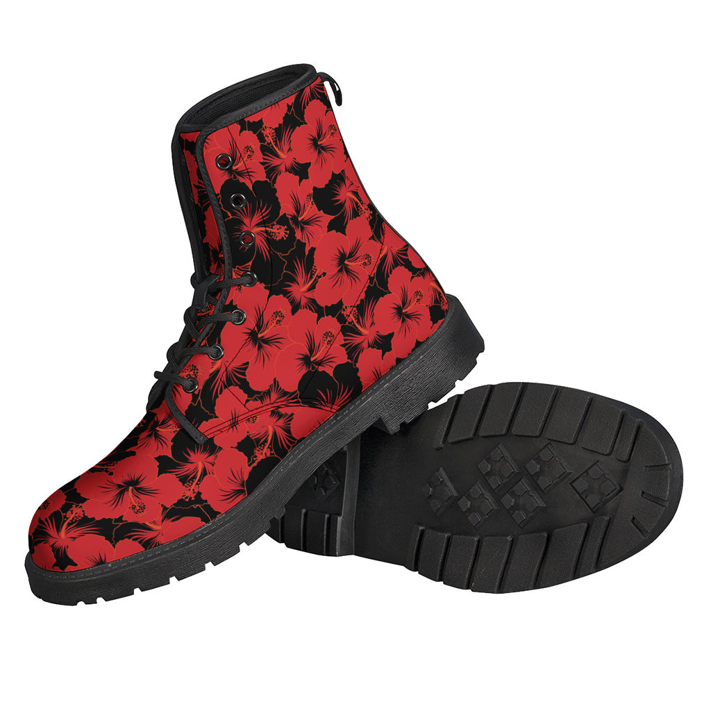Embrace your inner free spirit with these Black and Red Hibiscus Pattern Print Leather Boots. Handcrafted with premium leather, these boots are not only stylish but also lightweight and comfortable for all-day wear. The vibrant hibiscus pattern adds a fun and bohemian touch to any outfit, making them perfect for the modern hippie. Whether you're heading to a music festival or just want to add a touch of flair to your everyday look, these boots are sure to make a statement. Available in a range of sizes, these boots are a must-have for any hippie fashionista.