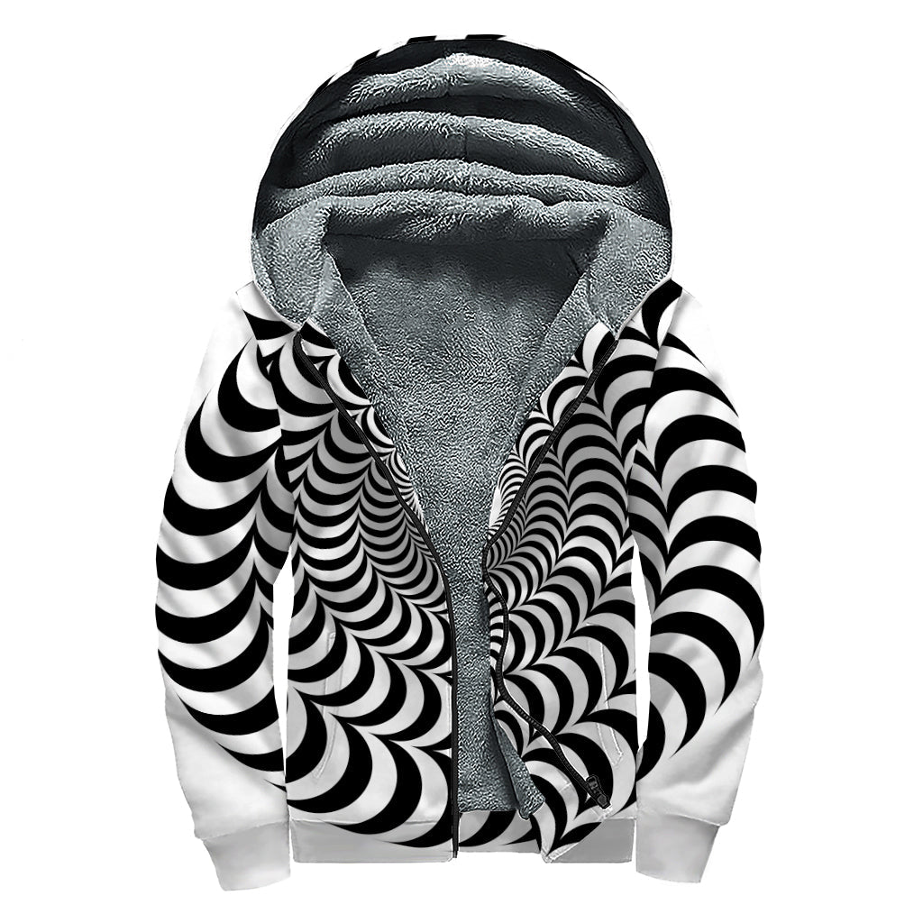 Embrace your inner free spirit with our Hippies Sherpa Lined Zip Up Hoodie. This unique hoodie features a striking black and white circle illusion print, perfect for adding a touch of bohemian flair to your wardrobe. The cozy sherpa lining will keep you warm and comfortable on chilly days, while the zip-up design allows for easy layering. Whether you're headed to a music festival or just running errands around town, this hoodie is sure to become a staple in your closet. Embrace the laid-back, carefree style of the hippie era with this one-of-a-kind piece.