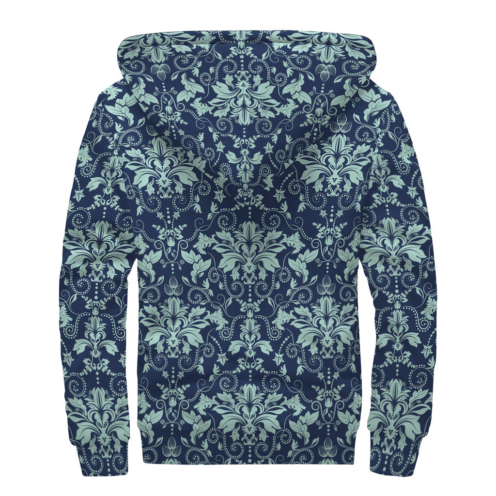 Blue and Teal Damask Delight: The Coziest Sherpa Lined Hoodie for Hippie Fashionistas
