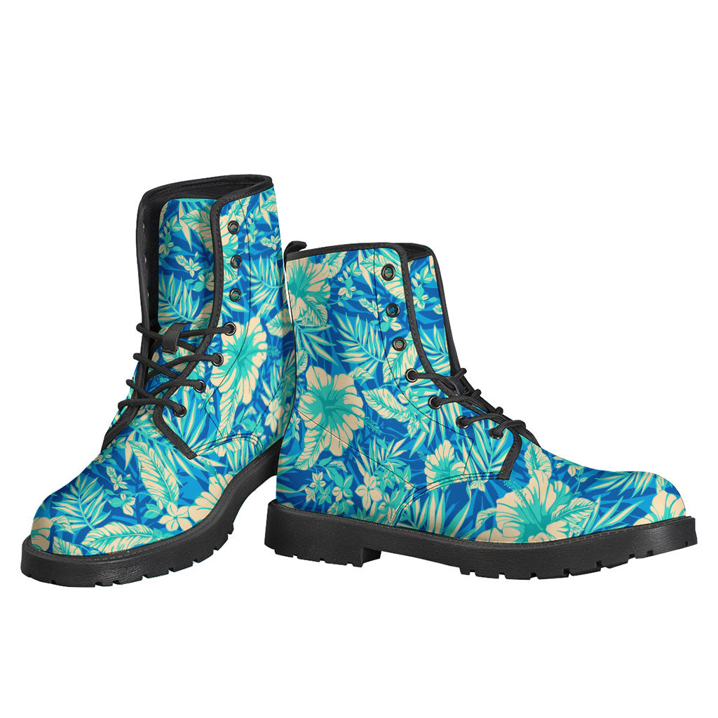 These Blue Blossom Tropical Pattern Print Leather Boots are the perfect footwear for any modern-day hippie looking to add a touch of bohemian style to their wardrobe. Made from high-quality leather, these lightweight boots are both stylish and comfortable, making them ideal for long days of music festivals, wanderlust adventures, or simply casual everyday wear.