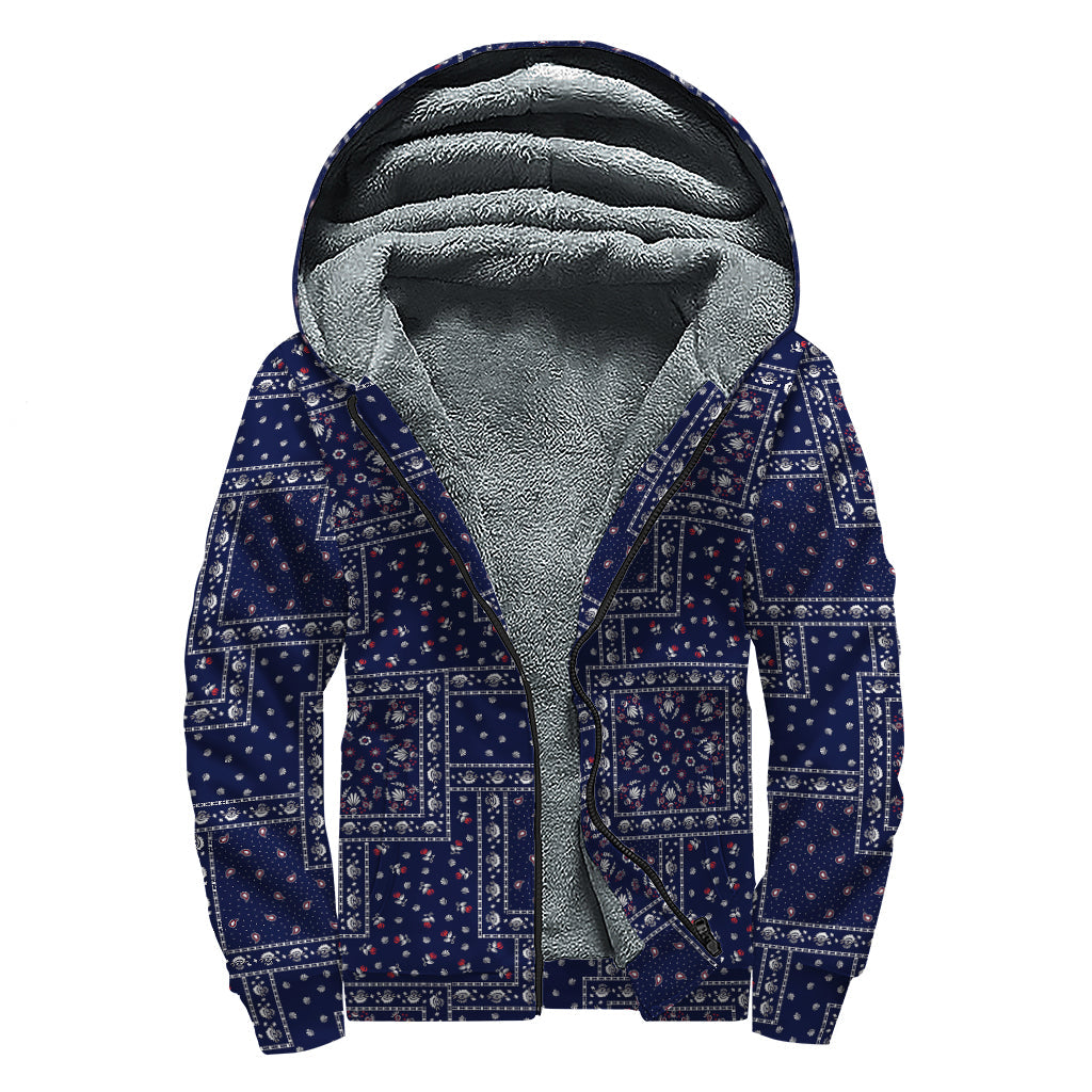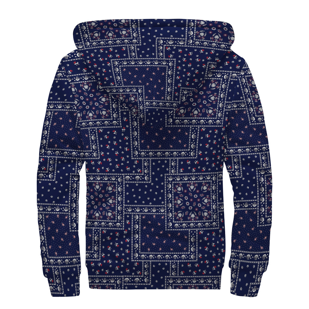 This stylish Sherpa lined zip-up hoodie is perfect for free-spirited hippies looking to stay warm and cozy while expressing their unique style. The vibrant blue floral patchwork pattern print adds a bohemian touch to any outfit, while the Sherpa lining provides extra warmth and comfort. Whether you're dancing at a music festival or simply lounging at home, this hoodie is sure to become a favorite in your wardrobe. Made from high-quality materials, this hoodie is durable and easy to care for. Embrace your inner hippie with this versatile and fashion-forward piece.